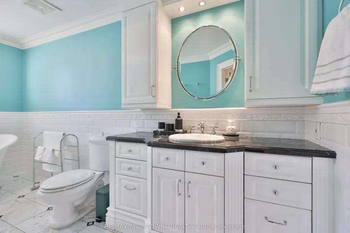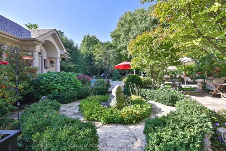 Set on a breathtaking 70’x209′ private lot in Burlington’s prestigious Roseland community, this stately stone and stucco home offers over 5,850 sq ft of finely curated living space across three levels. Showcasing timeless elegance and old-world craftsmanship, this home impresses with custom millwork, plaster crown mouldings, custom built-ins and rich hardwood, limestone and porcelain floors. Step into a grand foyer that leads to elegant formal dining and living rooms with a gas fireplace then discover the heart of the home: a chef’s dream kitchen featuring a sprawling island, top-of-the-line appliances, walk-in pantry, sunlit breakfast area with a walk out to the stunning gardens. Adjoining the kitchen is the great room with a two-storey ceiling, gas fireplace and a wall of windows framing your own backyard paradise. The main level also features a home office, stylish powder room and custom mudroom with access to an oversized double garage with epoxy floors. Upstairs, unwind in your primary retreat with vaulted ceilings, sunlit walk-in closet and luxurious 4-piece spa-inspired ensuite with steam shower. A loft-style library with built-in bookcases overlooks the great room and three more spacious bedrooms include a private guest suite, a shared 4-piece bath and convenient upper-level laundry. The lower level features a home theatre room, hobby room, second laundry, fitness studio with beverage centre and 3-piece bath and storage. Outside, the resort-style backyard is an entertainer’s dream featuring a 20’x40′ saltwater gunite pool (’19), stucco pool house (’15) with kitchenette, change room and garden storage, a pergola-covered stone patio (’19) with gas fireplace, dramatic landscape lighting and tranquil stone water feature, surrounded by stunning, lush, mature gardens. Just steps to top schools, parks, downtown and the lake, this distinguished home with its meticulous attention to detail exudes warmth and comfort and will appeal to the most discerning buyer.