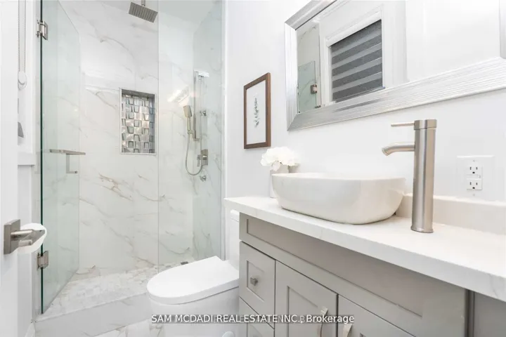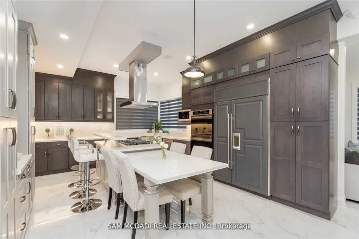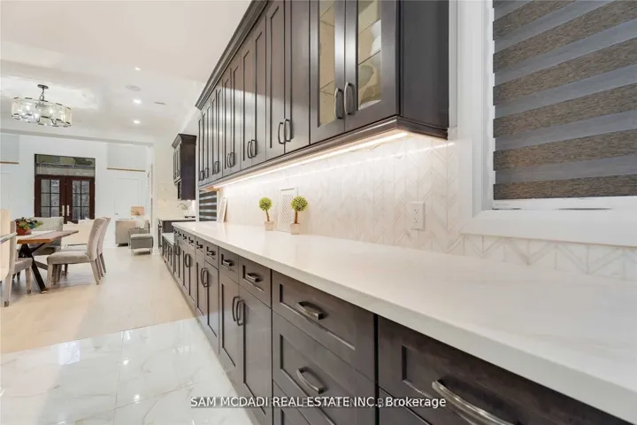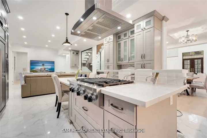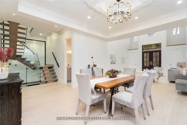Architecturally refined w/ modern functionality, this exceptional Lorne Park estate offers approximately 6,500 sq. ft. of luxurious living space with soaring 10-ft ceilings on the main and lower levels. Thoughtfully designed for modern living and upscale entertaining, the home features integrated surround sound, 5+3 bedrooms, 8 bathrooms, radiant heated hardwood and porcelain tile flooring, and a seamless open-concept layout that beautifully unites all principal living areas.A dramatic 20+ ft grand foyer makes a stunning first impression, flowing into an elegant dining room highlighted by coved ceilings, ambient LED pot lighting, and a sophisticated wet bar with built-in cabinetry, quartz countertops, and a marble backsplash. This space transitions effortlessly into a chef’s gourmet eat-in kitchen, fully equipped with a large centre island, oversized sink, premium stainless-steel appliances, a built-in Sub-Zero refrigerator, and direct access to a sun-filled family room with walk-out to the backyard.The main level is completed by a private bedroom with a 3-piece ensuite, a stylish powder room, and a practical mudroom with interior garage access. The second floor is dedicated to private living, featuring a lavish primary retreat with a generous walk-in closet and a spa-like 5-piece ensuite boasting a waterfall shower, heated porcelain floors, and his-and-hers vanities. Two additional bedrooms each include their own 3-piece ensuites, along with a convenient laundry room and a nanny’s suite with a separate entrance. Designed to impress and entertain, the lower level offers a spacious recreation room with built-in shelving, a secondary kitchen, three additional bedrooms, and its own separate side entrance from the mudroom. Set on an expansive deep lot backing onto Glen Road, this remarkable property also delivers outstanding future value, presenting a rare opportunity to sever the lot into two separateparcels.