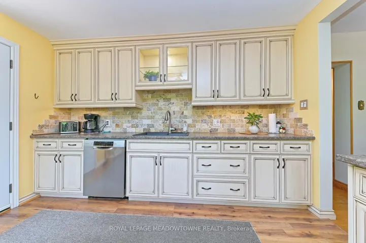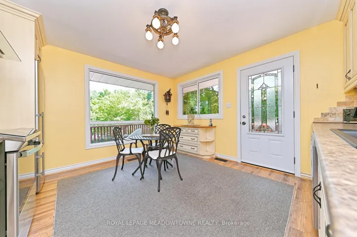 A tree lovers haven just minutes from downtown’s prime Park Area. If you are looking for a a superb location, encompassing privacy and steps from conveniences look no further. Over an acre at the end of a tree-lined cul-de-sac with nature at your doorstep. Solid custom home boasting many oversized windows allowing a ton of light in plus all the amazing views of forest and mature landscaping, fabulous oak and hickory floors, stone feature walls, a gas fireplace and a good size garage. It boasts a beautiful Barzotti kitchen with plenty of cabinetry and high-end appliances. There is a main floor rec room with the gas fireplace, a bathroom, laundry space and garage access. The interlock driveway fits at least six cars and there is a wrap-around deck to enjoy the trees! Spotlessly clean and meticulously cared for. Walk to the Farmers market, library and fairground plus shops, cafes, restaurants, the hospital and the GO. Minutes from the adorable Glen Williams Artisan Village with all its charm. Ideal for tree and nature lovers. The lot also includes a secondary ownership shared parcel just over 1 acre of land with Silvercreek running through it, exclusively used by the 4 laneway owners. Feels like country in town but featuring a natural gas furnace! A rare offering by the original owners on a fabulous street in town!