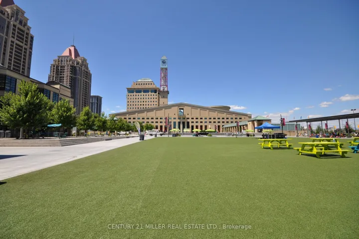 Experience modern urban living in the heart of Mississauga City Centre with this beautifully upgraded 2-bedroom + den, 2-bathroom suite in the iconic Absolute World/Marilyn Monroe towers. Offering 1,084 sq.ft. total (906 sq.ft. interior + 178 sq.ft. balcony), this bright home sits on the 18th floor featuring an expansive wrap-around balcony with walkouts, showcasing panoramic west-facing sunset views and the Toronto skyline through floor-to-ceiling windows. Freshly painted, it includes 9-ft ceilings, an open-concept kitchen with granite countertop, ceramic backsplash, new laminate flooring, new stainless steel appliances (2026) and a breakfast bar, perfect for everyday living. The spacious primary bedroom offers a 4-pc ensuite and walk-in closet, while the second bedroom includes sliding doors and a double mirrored closet. The open den is ideal as a home office, dining area, or additional sleeping space. An ensuite laundry room and two coat closets provide excellent storage. Underground parking beside the elevator exit, plus a large locker. Maintenance fees include heat, water, central AC, parking, and building insurance. Residents enjoy access to the world class, resort style 30,000 sq.ft. Absolute Club: indoor/outdoor pools, gym, basketball and squash courts, theatre, party rooms, guest suites, kids’ areas, yoga, car wash station, and 24-hr security. Building upgrades include interior renovations (2023) and balcony/exterior enhancements (2024). Steps from Square One, Sheridan College, Celebration Square, City Hall, Living Arts Centre, Central Library, restaurants, parks, transit, and minutes to highways 401/403. Future LRT connectivity. A move-in-ready suite in one of Mississauga’s most iconic landmark towers.