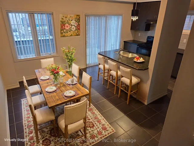 This beautiful and large 1,996 sq. ft. (above grade), 9 year-old Daniels END UNIT townhome offers refined living spaces and modern amenities. 3 bedrooms on the 3rd floor and a versatile 4th bedroom or den on the main floor complemented by a two-piece ensuite and provides a separate rear entrance with direct access to Winston Churchill Boulevard. Features include elegant dark stained hardwood floors, dark oak staircases with runners from the main to the second floor, and from the second to the third floor. The second floor boasts soaring 9-foot ceilings, granite countertops, and a ceramic backsplash in the kitchen. Recently (December 2025) installed upscale vinyl flooring enhances the second floor. Primary bedroom includes a large 5 piece ensuite plus HIS & HERS CLOSETS (one is a large walk-in, probably “hers”!) The unfinished basement includes a roughed in washroom and bright oversized windows. Perfect for a 5th bedroom or comfy rec room! Additional highlights include a spacious deck off the kitchen, proximity to shopping, convenient transit access at your doorstep, and easy connection to Highway 403. Pics with furniture are virtually staged.