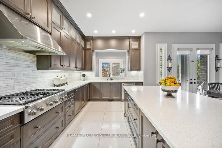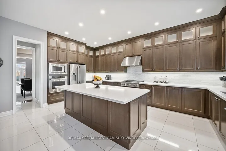 Welcome to the epitome of luxury in the prestigious Pavilion Estates community! This absolute showstopper boasts over 5,100 sq. ft. of mesmerizing elegance, surrounded by grand homes and showcasing true craftsmanship at every turn. From the moment you arrive, you’ll notice the interlocked driveway and 3-car tandem garage, perfectly complementing the home’s stunning exterior and its prime location facing a beautiful pond. Step inside to 10-foot ceilings on the main floor and 9-foot ceilings upstairs, highlighted by an open-to-above foyer and a seamless, functional layout designed for modern living. The chef’s kitchen features built-in appliances, quartz countertops, and flawless finishes that impress at every glance. Upstairs, discover 5 spacious bedrooms, with 4 full washrooms, and a second floor laundry adding convenience. The primary retreat includes a spa-like ensuite and a private balcony overlooking the tranquil ravine. The fully landscaped backyard and covered loggia provides the perfect space for entertaining or quiet evenings surrounded by nature. Located just steps from schools, parks, and public transit, this home truly delivers upgrades galore and an unmatched level of sophistication and comfort.