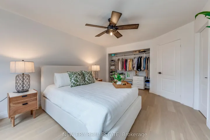 Welcome to this stunning end-unit townhouse situated on a premium ravine lot. This property is located in the desirable Meadowvale Village conveniently located close to all amenities, parks, walking trails, Meadowvale Conservation, Hwy 401, 407, public transit, Meadowvale GO, and minutes to Heartland Town Centre. This two-storey, newly renovated home has been beautifully updated and is in a family-friendly peaceful neighbourhood backing onto Levi Creek. The main floor open-concept design features a modern kitchen with quartz countertops, breakfast bar, and stainless steel appliances. The main living and dining area features hardwood floors, smooth ceilings, pot lights, modern light fixtures and large windows providing an abundance of natural light.This 3 bedroom, 3 bathroom home has a spacious second floor with 6″ engineered oak hardwood flooring throughout, custom oak staircase with wrought iron pickets, and custom built-in closets are just a few of this home’s incredible features. The spacious primary bedroom feels like a true retreat with a walk-in closet and a 2nd custom closet for ample storage, a spa-like ensuite with an oversized shower with rain-fall shower head. The other two bedrooms boast a generous size and custom closets. The basement is finished with a built-in wet bar, mini fridge, and plenty of storage. Walk-out access to an expansive, private backyard with a large stone patio area and gas line for BBQ. The picturesque views and privacy of this property makes this home spectacular for entertaining. Very low maintenance fees include lawn maintenance, snow removal, common areas, parking and insurance. A/C & Humidifier (’24), Newer furnace, Energy Efficient refrigerator (’24)