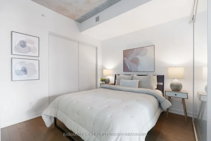 Welcome to The Duke in the heart of the Junction, a boutique, community focused building known for its quality construction and strong reputation. This bright 606 sq ft one bedroom suite features 9′ ceilings, floor to ceiling windows, and a sunny south exposure that fills the space with natural light. Enjoy a private south facing balcony overlooking greenery, a peaceful retreat with beautiful summer sunsets away from the bustle of Dundas St W. A functional layout offers a foyer with coat closet, open concept living area with engineered hardwood floors, and a modern Scavolini kitchen with stone countertops, paneled appliances, and stainless steel wall oven, cooktop, and microwave. The bedroom fits a queen sized bed with a double closet, complemented by a 4 piece bathroom with soaker tub and in suite laundry. Residents enjoy a well established 7 storey building with a gym, BBQ area, and party room. Unbeatable Junction location with a 97 Walk Score and 95 Bike Score, steps to cafés, restaurants, the farmers’ market, and minutes to High Park, the Stockyards, and transit including the UP Express for quick connection to Pearson Airport and nearby subway access at Keele or Dundas West station. An excellent opportunity for first time buyers, young professionals, downsizers, or investors seeking a well located west end home, or a perfect pied à terre for those who value lifestyle, walkability, and access to Toronto’s best green spaces.