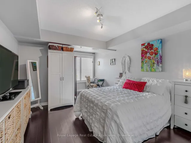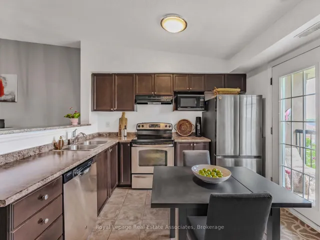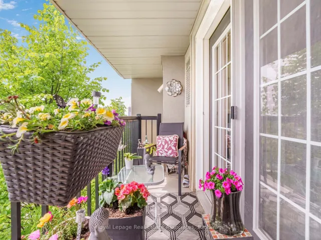 Welcome to this beautiful top-floor suite at Bristol on Main, where impressive 12-foot vaulted ceilings create a bright, open feel throughout. Offering 893 sqft of thoughtfully designed living, the open-concept layout features a spacious living area that flows effortlessly into a well-appointed kitchen with an eat-in dining space and breakfast bar, ideal for both everyday living and entertaining. French doors open to a private balcony overlooking the peaceful park and lush greenery, creating a serene outdoor escape. The generous primary bedroom includes a cozy sitting area or workspace with the same tranquil views. A flexible second bedroom or den features a walk-in closet, adding valuable storage and versatility. Pride of ownership is evident throughout this meticulously maintained suite and well-managed building. Conveniently located near excellent schools, Milton GO, public transit, and Highway 401, everything you need is within easy reach. Plus experience the comfort and charm of top-floor living in this exceptional suite!