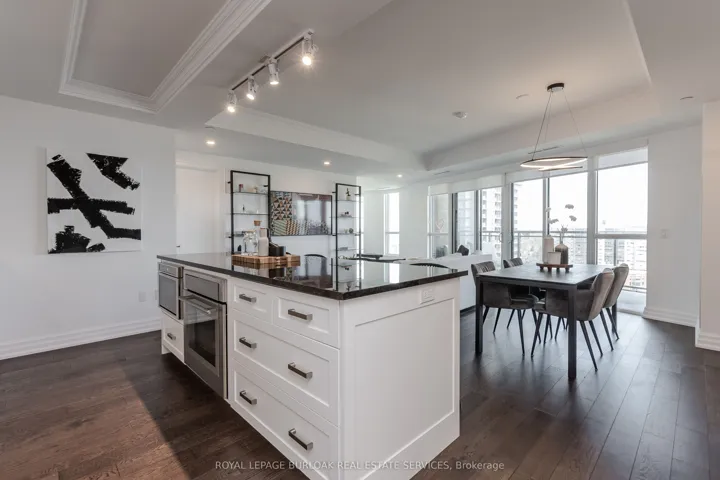 Experience unparalleled luxury at Bridgewater Residences on the lake. This stunning 1,269SF unit boasts a flawless layout and breathtaking, unobstructed views of Lake Ontario, from Burlington to the Toronto skyline. Every detail speaks of quality, from the hardwood floors to the high-end Thermador built in kitchen appliances, including a 5-burner gas range set in granite countertops. Floor-to-ceiling windows flood the open-concept living and dining area with natural light, while offering access to a spacious balcony equipped for BBQs. Both bedrooms feature spectacular views and luxurious en-suites-the primary with a 5-piece set including a separate tub and glass shower, all complemented by marble and granite finishes with heated floors. The secondary bedroom enjoys ensuite privileges and also boasts heated floors. A generous corner den provides a flexible space, ideal for a home office or gym, equipped with built-in cabinetry, which can be easily converted into a 3rd bedroom. Included are central vacuum and a garbage disposal unit. Enjoy the building’s exclusive amenities: indoor pool, rooftop courtyard, dual gyms, games and party rooms, and a lakefront deck. Benefit from 24-hour concierge, bike storage, valet visitor parking, and two EV-ready parking spaces, enhancing this premium living experience.