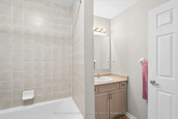 Mattamy Brannan model offering nearly 1,400 sq ft of finished living space including a finished basement. Freehold home with no condo fees. Open concept main level with gas fireplace and kitchen backsplash. Three bedrooms and full bathroom on the upper level. Finished basement provides additional living space for family room, office, or gym. Private fenced backyard with wood deck and perennial gardens. Covered and recessed front porch. Well-loved home on a quiet, low-traffic street with walking trail at the end. Short walk to Metro, Fresh Co, Starbucks, Tim Hortons, Shoppers Drug Mart and dozens of restaurants. Elementary school approximately 8 minute walk away. Affordable entry into the Milton market.