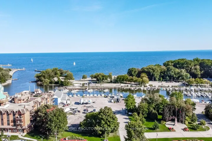 Extremely Rare Bluenose Corner Unit with Private Terrace in Bronte Harbour Club! Welcome to the prestigious Bronte Harbour Club, where lakeside living meets unmatched convenience. This rarely available terraced corner Bluenose unit offers 1,428 sq. ft. living with panoramic, breathtaking views of Lake Ontario, Bronte Harbour, and Bronte Creek. Featuring 2 spacious bedrooms, 2 full bathrooms, and soaring 9-foot ceilings, this suite is filled with natural light and designed for comfort. The highlight is the private 700 sq. ft. terrace, an entertainers dream, with incredible vistas from every angle. Additional features include two parking spaces, one locker, and resort-style amenities: 24/7 concierge and security, indoor pool, sauna, fitness centre, games room, woodworking shop, party room, guest suite, and an expansive outdoor terrace by the creek. Residents enjoy the warmth of a well-managed, friendly community with exceptional staff. Located steps to Bronte Village, you will have everything at your doorstep: marina, waterfront trails, shops, cafes, restaurants, Farm Boy, yacht club, and endless outdoor activities from canoeing and kayaking to cycling and walking. Easy access to public transit, the GO station, and major highways makes commuting effortless.This is a one-of-a-kind opportunity to own a signature unit in one of Oakville’s most desirable waterfront residences.