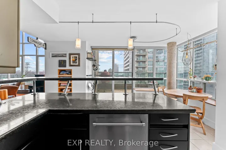 A rare, architecturally distinct penthouse loft in the heart of Mimico, offering a level of scale and customization seldom found in condominium living. Originally designed by the developer as a combination of two suites, this one-of-a-kind residence spans almost 1,800 square feet and occupies a prime corner position with sweeping city skyline and water views. Defined by its dramatic 17.5-foot floor-to-ceiling windows, the home is filled with natural light throughout the day, creating an open, airy atmosphere that enhances both everyday living and entertaining. Two private balconies provide seamless indoor-outdoor flow and offer multiple vantage points to take in the surrounding landscape. The thoughtfully designed layout includes two bedrooms plus a den, balancing spaciousness with functionality. The primary suite features a large walk-in closet and a fully updated en-suite complete with a dual shower and double vanity. Clean lines and modern finishes carry throughout the space, complementing the loft’s architectural character. Additional features include premium side-by-side two-car parking with a private locker directly attached, a rare and highly practical offering. A truly unique penthouse residence, combining scale, design, and livability in one exceptional home.