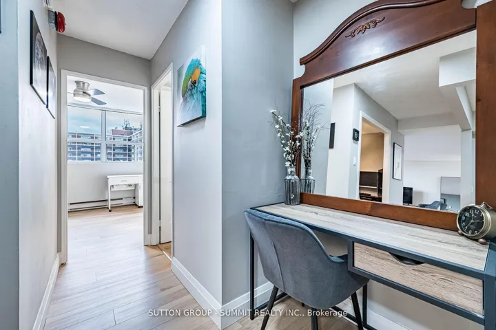 Beautifully Renovated & Move-In Ready! Located in The Empress, one of Burlington’s most sought-after condominium communities. This oversized 1-bedroom + den suite is the largestone-bedroom layout in the building, offering over 1,000 sq. ft. of bright, open living space with east and west exposures – perfect for enjoying both sunrise and sunset views. Completely renovated in 2023-2024, this suite features new flooring and baseboards throughout, freshly painted walls and ceilings, new doors, modern light fixtures, and ceiling fans. The custom kitchen shines with sleek cabinetry, extended counter space, and stainless steel appliances -ideal for cooking and entertaining. The updated bathroom offers a new tub, toilet, vanity, and elegant touch-light mirror for a spa-like feel. The bright living and dining area opens to a large private balcony, perfect for relaxing outdoors. The spacious bedroom includes two large double closets, while the versatile den is ideal for a home office. In-suite laundry and one underground parking space complete this exceptional home. Building Amenities include: 24-hour concierge, outdoor pool, fitness centre, sauna, party room, library, car wash bay, workshop, barbecues, EV charging station, and ample visitor parking. Enjoy comfort, security, and convenience just steps from shopping, dining, transit, and the Burlington Centre Mall.