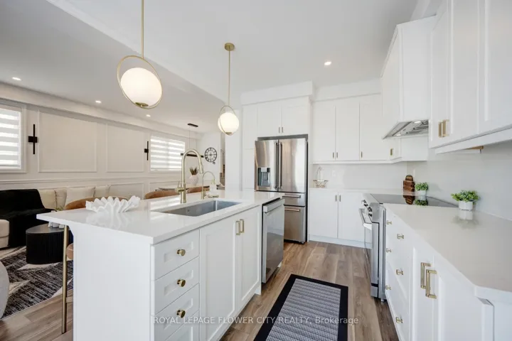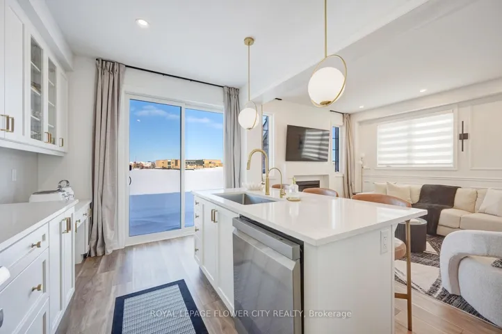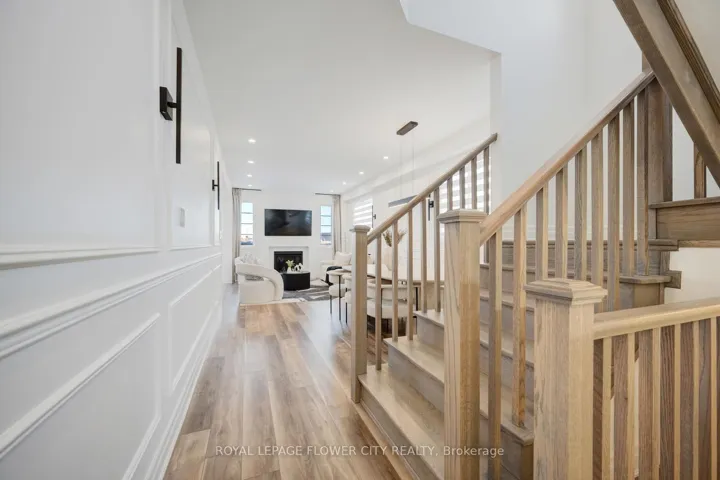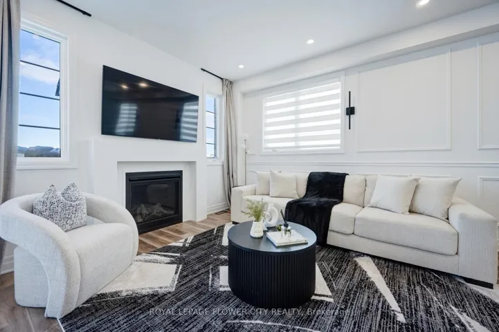 An exceptional opportunity to own a nearly new, freehold 2-storey End unit townhome offering 4 bedrooms and 3 bathrooms in the prestigious, family-oriented Bowes neighbourhood of Milton. Showcasing an elegant stone and stucco exterior, the home welcomes you into a refined foyer finished with porcelain tile flooring bright, open-concept layout. The main level features 9-foot Smooth ceilings, carpet-free flooring on both the main and second levels with premium finishes throughout. Sun filled kitchen features a large Whistler Polished Quartz island, quartz backsplash, high end stainless steel appliances and custom cabinetry. Expansive windows illuminate the living and dining spaces, creating an atmosphere that is both warm and effortlessly upscale ideal for entertaining or quiet evenings at home.A custom oak staircase leads to the upper level, where four spacious bedrooms offer comfort and privacy. The primary suite is a true sanctuary, complete with a walk-in closet and a spa-like ensuite with double vanity, upgraded quartz countertops, and a frameless glass shower. All interior doors have been upgraded for a refined finishes. The convenience of an upper-level laundry room further enhances everyday living. This meticulously maintained home offers a rare combination of modern luxury, thoughtful design, and an exceptional location, making it perfectly suited for discerning buyers seeking comfort, elegance, and long-term value.