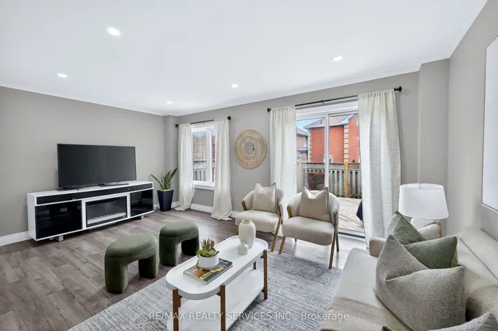 Gorgeous upgraded 3 bedroom, 4 bathroom all brick townhome. Meticulously maintained and rarely offered in this desirable area. Featuring a bright and spacious open concept main floor with a welcoming foyer, gleaming porcelain flooring, and 2piece bath. The fabulous eat in kitchen offers an extra built in pantry, double sink, built-in dishwasher, backsplash. Enjoy the convenience of main floor laundry with side yard access. The open living and dining area is filled with natural light from large windows and showcases rich toned flooring, crown moulding, and pot lights. Walk out to a fully fenced backyard with a large deck and stepping stone pathway. The generous primary bedroom features a walk-in closet, and a 4 piece ensuite. The finished basement includes a 2 piece bath, recreation room, and office area perfect for additional living space. Close To Schools, shopping, Transits and HWYs.