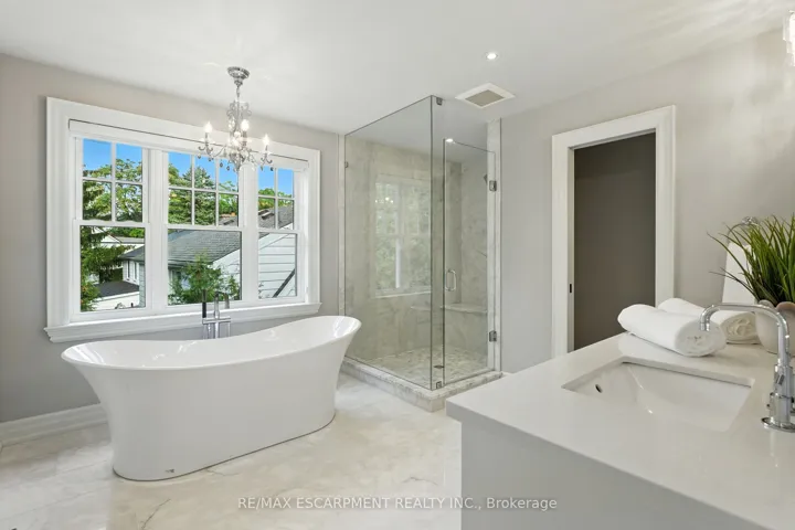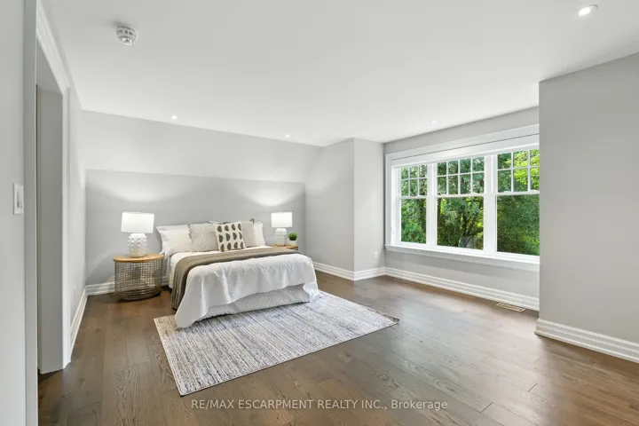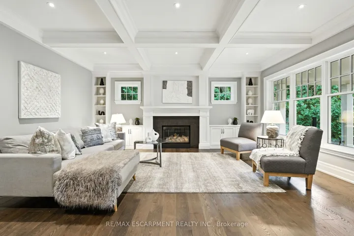Custom-built in 2016 by M. Butler Custom Homes, this exceptional residence offers approximately 5,000 square feet of luxurious living space, showcasing premium finishes and superior craftsmanship throughout. Situated on a 217-ft deep, pool-sized lot backing onto the RBG Hendrie Valley Sanctuary, this home blends elegance with natural serenity. The gourmet kitchen features a large island with dual-sided cabinetry, sink and pendant lighting, along with built-in stainless steel appliances including a wall oven, gas cooktop, fridge and dishwasher plus a sunlit eat-in area overlooking the private backyard. Rich hardwood flooring spans the main and second levels, complemented by hardwood stairs, coffered ceilings, crown moulding and pot lights that add warmth and architectural detail. The private primary suite includes a luxurious spa-like ensuite and two walk-in closets with custom built-ins. A finished walk-out lower level adds flexible living space, offering a fifth bedroom, full bathroom, rec room and multi-use area perfect for an office, gym, craft room or playroom. An upper-level balcony off the great room extends the living space outdoors and features a gas BBQ hook-up. Additional highlights include oversized windows, engineered hardwood, central vacuum and full home pre-wiring for automation and audio/video distribution. Ideally located minutes from Aldershot GO Station, Highways 403 and 407, as well as nearby restaurants and shopping. RSA. Luxury Certified.