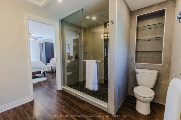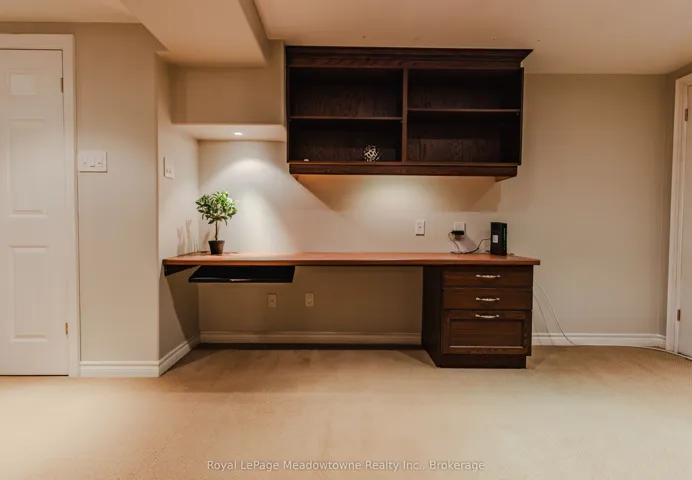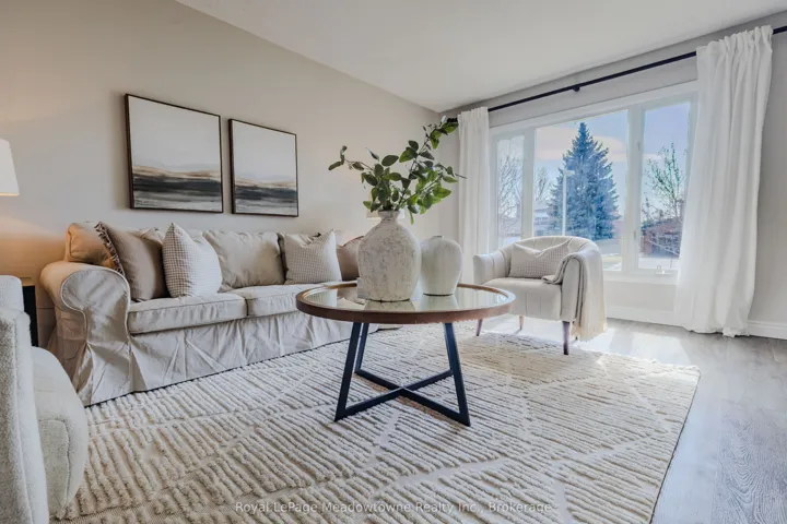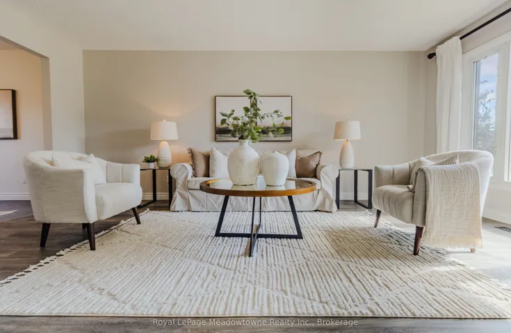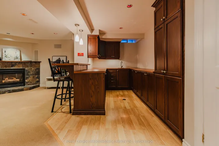 Beautifully maintained Hutton model offering approximately 2400 sq ft of living space, ideally located on a highly sought-after street and backing onto greenspace, a walking trail, and a school. This inviting home welcomes you with a spacious and impressive front foyer, a combined living and dining area, and a newly updated staircase. The main floor also features a cozy family room with walkout access, a 2 pc powder room, a potential main-floor laundry room, and a convenient mudroom off the double car garage. The bright, spacious kitchen is perfect for entertaining, complete with a separate cooking area and a walkout to a private landscaped backyard with an irrigation system. All four bedrooms are generously sized, including a primary suite with a 4-piece ensuite. A practical laundry chute runs from the second floor main bathroom directly to the basement laundry/craft room. The finished basement is designed for entertaining, featuring a large recreation room, fireplace, we bar, and versatile spaces including a dance or yoga area or workshop. Additional highlights include a high-efficiency heat pump system(2023),central air conditioning, upgraded windows and plenty of parking. Located in a welcoming community close to schools, parks, trails, shopping, hospital, sports facilities, arts centre, GO transit, and major highway- this exceptional home is a must-see!