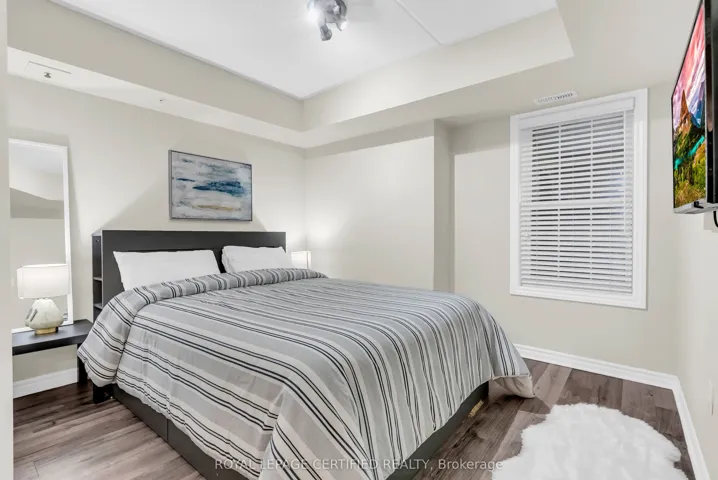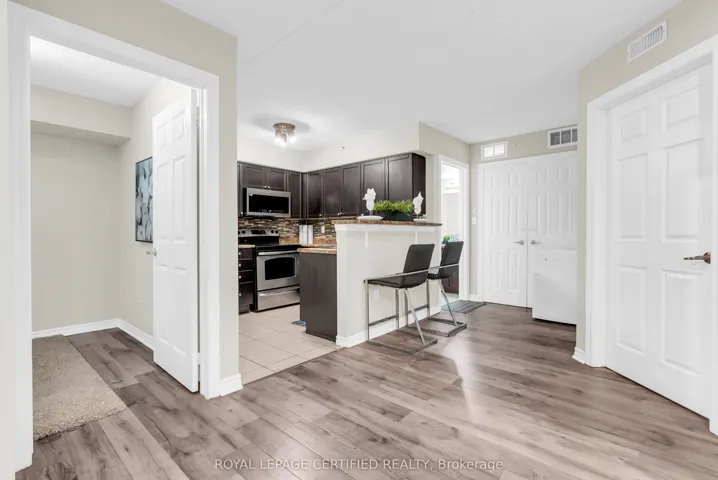 Welcome to this move-in ready 1-bedroom + den condo in a highly convenient and welcoming community! Located in The Bristol on Main Condos, you’ll be just steps from shopping, the First Ontario Arts Centre, community and leisure facilities, transit, major highways, parks, trails, conservation areas, and all essential amenities.This bright and inviting unit features an open-concept kitchen that flows seamlessly into a sun-filled living area, a spacious bedroom with a large window, a private patio, and a versatile den-perfect for a home office or quiet retreat. The 4-piece bathroom is conveniently located near the in-suite laundry. Enjoy newly installed laminate flooring throughout the entire unit.Residents have access to excellent building amenities including a fitness room, party room, underground parking, car wash, and an exclusive locker/storage space. Additional parking can be purchased through the condo corporation.Whether you’re looking for your next home or a smart investment, this condo is a great choice!