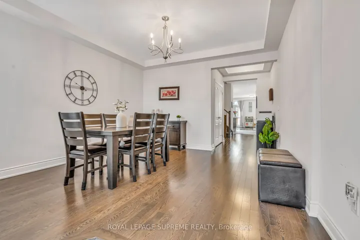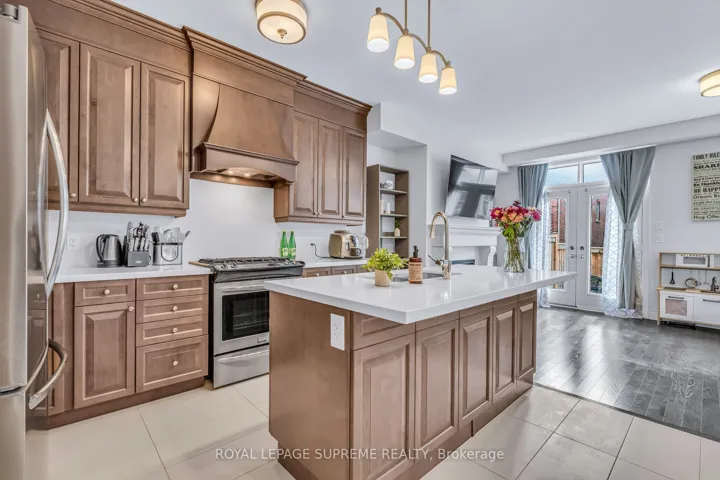 Welcome to this well maintained executive townhouse, in the prestigious Glenorchy community of Oakville. Built by Fernbrook Homes, this elegant three-bedroom, three-bathroom residence offers over 2,100 sq. ft. of above-grade living space and features the highly sought-after 25-foot-wide “Woodcroft” floor plan-thoughtfully designed for comfort and functionality, ideal for families and professionals alike. The English Manor-inspired exterior showcases timeless stucco, custom mouldings, and a charming covered front porch. Inside, the sun-filled open-concept main floor boasts hardwood flooring, tray ceilings, and a spacious living and dining area-perfect for both entertaining and everyday living. The chef-inspired kitchen is appointed with quartz counter-tops, upgraded cabinetry, stainless steel appliances, heated floors, includes breakfast eat-in area and a centre island with an extended breakfast bar, offering ample storage and workspace. Great room provides a walkout to a fully fenced backyard-ideal for summer gatherings and outdoor enjoyment. Upstairs, the generous primary suite features a large walk-in closet and a spa-like five-piece en-suite complete with walk in quartz vanities and a frame less glass shower. Two additional well-sized bedrooms, each with closet, share a modern four-piece bath, with one bedroom offering a dedicated study nook. A convenient second-floor laundry room, smooth ceilings throughout, and carpet-free flooring enhance the home’s modern appeal. Ideally located across from a park and close to top-rated schools, including Dr. David R. Williams Public School, as well as scenic trails, shopping, Oakville Trafalgar Memorial Hospital, major highways (403/407/401), and the GO Station. An exceptional opportunity to own a beautifully upgraded and stylish townhouse in one of Oakville’s most sought-after neighbourhoods. Please refer to the feature sheet for a complete list of upgrades and details.