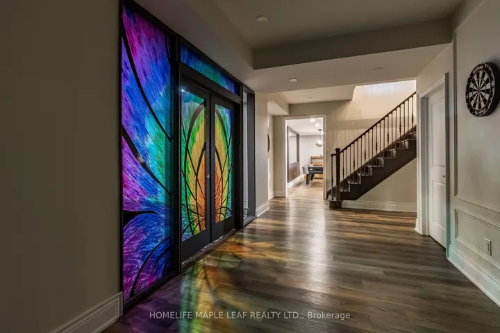 One Of The Best Lots In One Of Brampton’s Most Prestigious Neighbourhoods.Over 6000 sq ft above ground with Unparalleled Luxurious Finishes.Backing To Ravine,Fronting To Park,Pond Views.10Ft. Ceilings On Main Flr,Crown Mouldings Throughout.Porcelain Tiles,Hrwd 2nd Flr.Custom Kitchen:Wolf Stove&Double Ovens,Industrial Sized Fridge/Freezer.Large Brs,Each W/Own Ensuite & Wi Closet.Look-Out Bsmt W/33Ft Home Theatre,Gym,Bar,Sauna,Multiple Games Areas,Large Windows.Concrete Patio In Backyard.Elevator possible