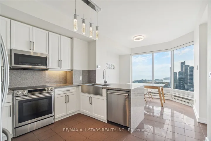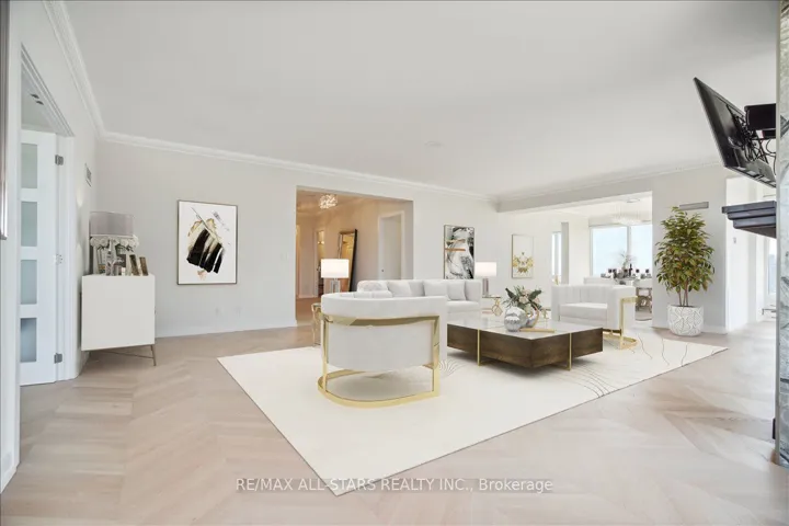 For Sale: Penthouse Suite 4507 – 1 Palace Pier Court, Toronto Condo Apartment | 3 Bedrooms | 2+1 Bathrooms | Approx. 2,437 Sq. Ft. | 9 Ft Ceilings Penthouse suite offering approximately 2,437 sq. ft. of interior space in a waterfront condominium. This unit features unobstructed views of Lake Ontario from the kitchen, dining area, and bedrooms, and city views from the bedrooms and den.Bright open-concept layout with large principal rooms and floor-to-ceiling windows providing natural light throughout.Interior Features:Kitchen with quartz countertops, full-height backsplash, and built-in appliances Engineered hardwood flooring in a chevron pattern Crown moldings and smooth ceilings Bathrooms with updated fixtures and vanities Two den areas suitable for office or additional use Building Amenities Include:24-hour concierge, security, indoor pool, fitness centre, sauna, common areas, and visitor parking .Located in the Mimico waterfront area with access to parks, trails, public transit, and the Gardiner Expressway. Close to local amenities and approximately minutes to downtown Toronto.