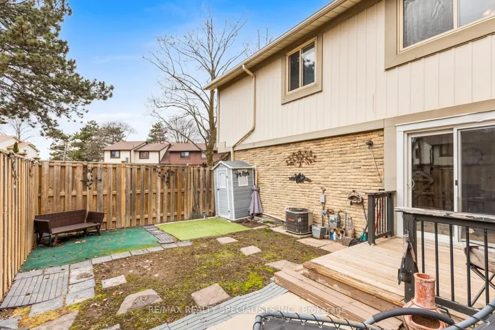 Rare Quad Feels Like a Semi. This rarely offered corner 4 bedroom townhouse has been converted to 3 large bedrooms with the primary room offering it’s own ensuite bathroom. and a sitting room which is ideal for an office space or small nursery. This is one of the largest units in the complex, offers the space and privacy of a semi-detached home. Dare to find another unit in the complex with 4 bathrooms. This well-maintained home features an opened finished basement with its own 3-piece bathroom providing exceptional flexibility-perfect for a guest suite, home office, or additional living space.The large white kitchen includes a generous breakfast area and ample counter space, ideal for both everyday living and entertaining. Step outside to your private yard with a shed, a feature that adds outdoor storage. It is a quiet retreat for relaxation or family time. Surrounded by green space, this home offers a peaceful setting while being just minutes to the credit river and it’s trails. Close to schools, parks, shopping, and transit, with easy access to major routes. Additional highlights include: Low-maintenance living with roof and windows covered by maintenance fees. Also covered by maintenance fees is unlimited internet, cable and water. Forced air gas heating and central air conditioning-a major upgrade over electric heating. Private Recreation Centre features an outdoor pool, basketball court and large party room. Whether you’re a first-time buyer, growing family, or investor, this home delivers the perfect blend of space, location, and value.