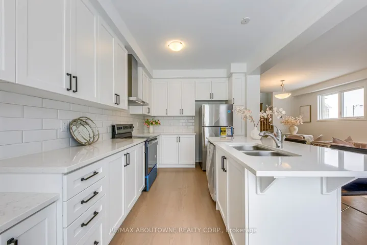One-year-new, never-lived-in fully upgraded 1938 sq. ft. end unit townhouse located on a quiet street of Milton’s mostdesirable new development subdivisions. This sun-filled home offers a thoughtfully designed layout featuring 4 spacious bedrooms, 3 modernwashrooms, 2 walk-in closets and 9 feet ceilings on both main and second floor. The open-concept main floor features abundant natural light,and a modern kitchen with a large center island, high-end cabinetry, and upgraded quartz countertops. Tasteful hardwood flooring andstaircases add elegance throughout the home, while upgraded porcelain tiles enhance all washrooms. As an end unit, this home enjoys addedprivacy and natural light, with one side backing onto peaceful backyard green space. Ideally located close to the community centre, schools,shopping, public transit, major highways, and all essential amenities, this home offers both comfort and convenience.