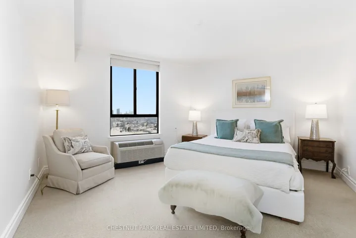 Penthouse 21 – The Masters. This spacious, light filled penthouse suite has it all! 3 bedrooms 2 baths, kitchen with breakfast bar, en-suite laundry, plenty of storage, 3 balconies, and parking for 2 cars, all within an award-winning building offering superior amenities. This split-design suite has the primary bedroom located in a designated wing that provides privacy and features an ensuite bathroom plus an oversized walk-in closet. The family bedrooms and second bathroom are located on the other side of the large living area, with a built-in desk unit in the middle room, perfect for schoolwork or a home office. The Masters is a fabulous resort-style community set on 11 acres of beautifully landscaped grounds, with walking paths and a Japanese garden. It offers plenty of amenities: indoor and outdoor saltwater pools, sauna, clubhouse and games room, playground, a fully equipped gym, squash, basketball and tennis courts, woodworking room, craft room, and car wash area. A complete refurbishment and upgrade of the common areas is well underway! This large penthouse suite offers outstanding value, comfort and lifestyle – a rare opportunity to own a piece of paradise in one of Etobicoke’s most desirable locations.