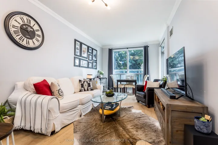 Welcome to the prestigious and highly sought-after Waterford Condos! This exceptional residence features a stunning, expansive terrace surrounded by mature trees-perfect for relaxing or entertaining. Fire up your gas BBQ and enjoy your own private outdoor retreat. This sun-filled second-level suite offers a bright, open-concept layout with one bedroom and one bathroom. Designed for seamless indoor-outdoor living, the unit provides direct terrace access from both the living room and primary bedroom. The updated kitchen showcases stainless steel appliances, granite countertops, a breakfast bar, and custom LED lighting. Additional highlights include a sleek, modern renovated bathroom, bleached oak wide-plank engineered hardwood flooring, a spacious primary suite, and efficient storage throughout. Residents enjoy an array of world-class amenities, including an indoor pool, newly renovated lobby and business centre, concierge service, guest suites, rooftop patio, and more. Ideally located just steps from the lake, restaurants, and shops. This home is a commuter’s dream-just minutes to Mimico GO Station, St. Joseph’s Hospital, major highways, and the scenic Humber Bay Trails.