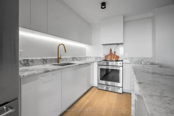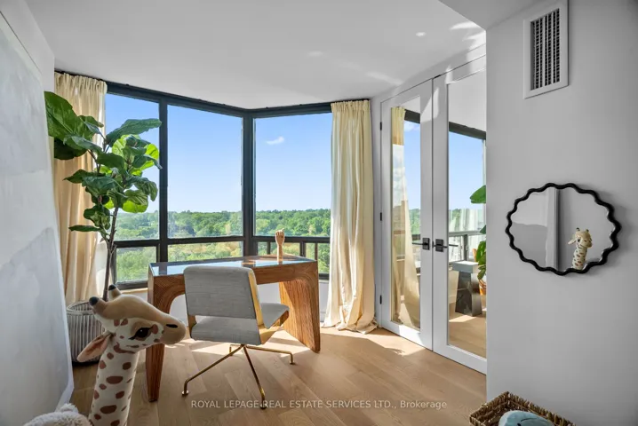 Welcome to a beautifully reimagined suite in the sought-after Barclay Terrace, where thoughtful design meets everyday comfort. This fully renovated residence offers a unique, open-concept layout that maximizes both space and flow, creating an inviting atmosphere that feels as good as it looks. Expansive north-west facing windows frame peaceful treetop views stretching toward Islington Golf & Country Club, filling the home with natural light while offering exceptional privacy. Smooth ceilings and premium hardwood flooring carry throughout, enhancing the suite’s clean, modern aesthetic across approximately 1,060 sqft. At the heart of the home, the kitchen is designed to impress and perform, featuring full-sized appliances, a sleek built-in range hood, quartzite surfaces, and a generous waterfall island with abundant storage. Perfectly positioned between the living and dining areas, it’s ideal for both casual living and hosting. The dining area includes a custom built-in with glass cabinetry and integrated lighting, comfortably accommodating both intimate dinners and larger gatherings. In the living room, elegant French doors open to a flexible second bedroom or home office, offering versatility for today’s lifestyle. The primary bedroom is a calm retreat with room for a king-sized bed, custom shelving, and a refined 3pc ensuite with a walk-in shower. A second full bathroom features an oak vanity, marble countertop, and tub, blending style with practicality. A standout feature is the dedicated laundry room, thoughtfully designed with a large quartzite counter and excellent storage-bringing ease and organization to daily routine. Residents enjoy exceptional amenities including 24-hour concierge, indoor pool and hot tub, sauna, tennis and pickleball courts, squash, fitness centre, library, billiards room, and beautifully maintained outdoor spaces with BBQs and a courtyard. A true sense of community, making Barclay Terrace a place residents are proud to call home.