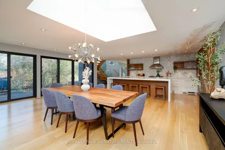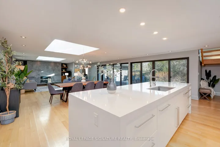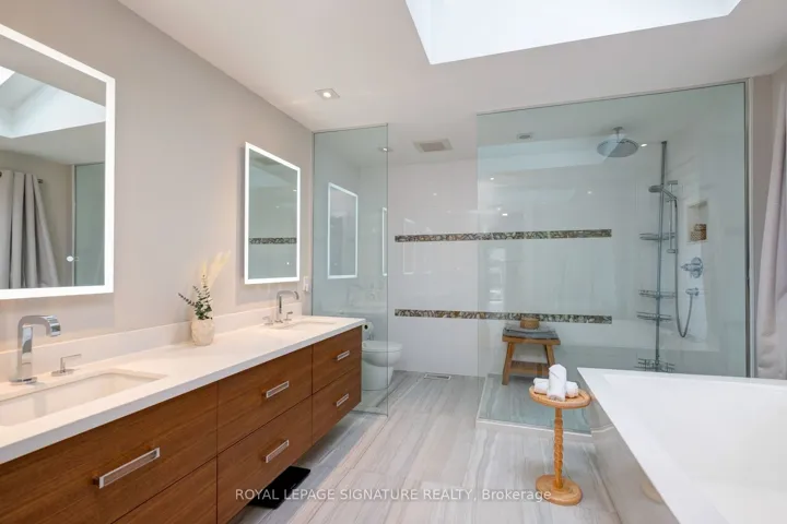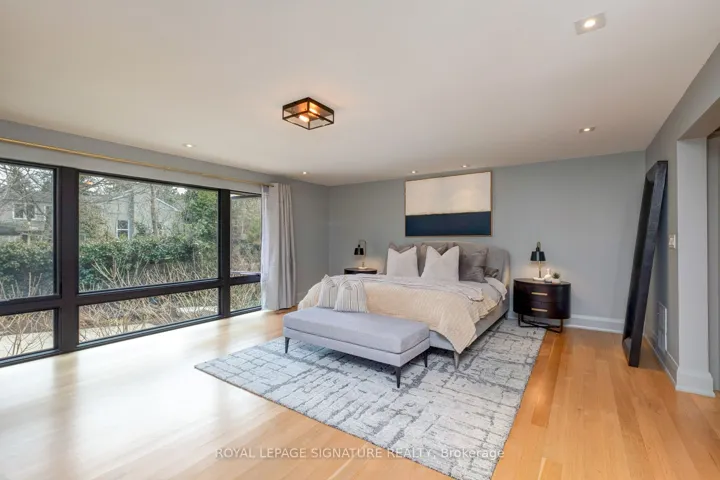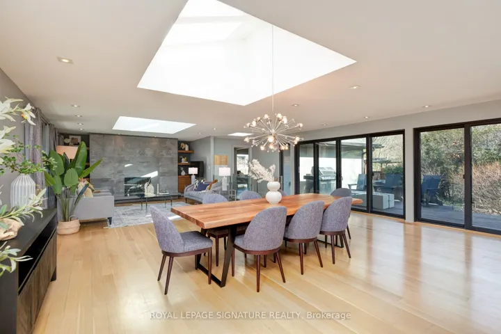 In this prestigious Oakville community, homes of this calibre rarely come to market. Welcome to 185 Morrison Rd – a meticulously maintained luxury residence on a picturesque lot, where every detail has been considered and nothing has been overlooked.At the heart of this modern home is a stunning walnut kitchen outfitted with top-of-the-line appliances including Wolf, Sub-Zero, and Miele. A dedicated pantry, appliance garage, integrated appliances, and abundant storage make this a kitchen that functions as beautifully as it looks. It flows directly into a large combined dining and living area anchored by a gas fireplace, a layout designed for effortless entertaining. Double sliding glass doors open fully onto the deck, creating true indoor-outdoor living through the spring and summer months.The main floor primary suite is a rare and desirable offering, ideal for those who appreciate single-level living or simply value separation from the rest of the home. Overlooking the pool and landscaped grounds, it features a generous walk-in closet and a spa-calibre bathroom with an oversized soaker tub, double vanity, separate shower, and water closet.Upstairs, two additional bedrooms each offer built-in closets and their own ensuite bathrooms thoughtfully appointed for children, guests, or anyone who values privacy and comfort equally.The lower level is expansive & fully realized: a home gym, pool table area with wood-burning fireplace, large recreation room with gas fireplace, full bathroom, and a dedicated office or guest suite. Space for every need.Step outside and the 101×149 foot lot delivers a fully landscaped backyard designed for resort-style living features a sparkling pool, pergola, outdoor dining area with a natural gas BBQ hookup, fire table, and a generous deck. It is a space that will be used and loved in every season.Top-ranked school district. Walking distance to Lake Ontario. A truly exceptional home in one of Oakville’s most prestigious neighbourhoods.