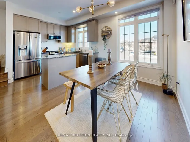 Rare freehold townhome offering modern finishes, private outdoor living, and unbeatable walkable convenience in one of the area’s most desirable family-friendly communities. Well-maintained by its original owner for the past six years, this bright and spacious home features 3 generous bedrooms and 4 bathrooms with a thoughtfully designed layout ideal for modern living. The ground-level family room offers a walk-out to a charming porch, creating a versatile space perfect for relaxing, working from home, or welcoming guests. The sun-filled main level features an open-concept great room with fireplace and large windows, seamlessly connected to a gourmet kitchen with granite countertops, centre island, and upgraded stainless steel appliances. Step out to the large covered patio – perfect for entertaining or relaxing. Hardwood flooring runs throughout the ground floor, main floor, and second-floor hallway. The primary bedroom includes a private balcony, walk-in closet, and 4-piece ensuite, while two additional well-sized bedrooms offer comfort and practicality for family members or guests. Perfectly situated in a prime location, just a 2-minute walk to two bustling shopping plazas offering grocery stores, banks, restaurants, gyms, medical clinics, daycares, restaurants and the library. Enjoy easy access to parks, scenic trails, schools, and major highways including Hwy 407 and 401. Surrounded by thriving business hubs, this high-demand neighbourhood delivers the ideal balance of convenience, comfort, and community. A move-in ready home offering lifestyle, and everyday ease in a truly walkable neighbourhood.