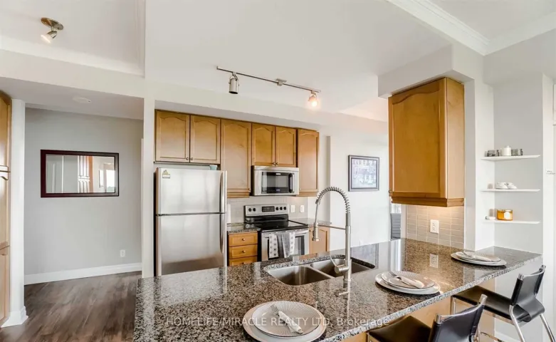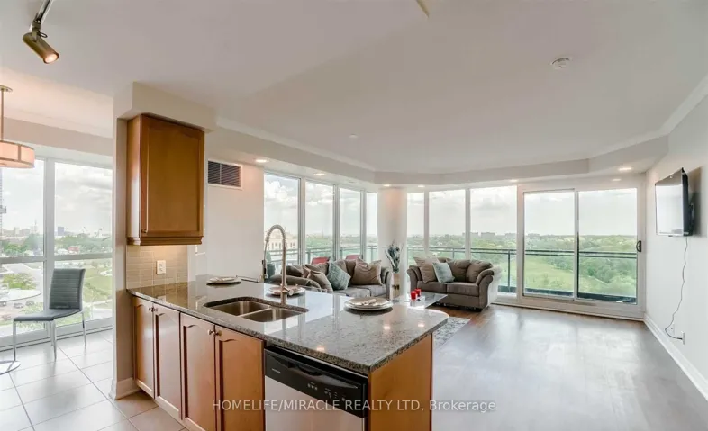 Stunning and spacious 2 Bdrm Den Corner Unit w/ A wraparound Balcony & wonderful views of Downtown Brampton. Large Open Concept, w/FL to Ceiling Windows & Lots of Natural Sunlight. New Vinyl Flooring, New Vanities In Both Bathroom. Large & Well Laid Out With Bat In Kitchen, Granite Countertops & Breakfast Bar, Over-Looking the Living & Dining Area. Master Bdrm w/Ensuite & W/I Closet. Entry to Unit Has A Den. Easy Access To Hwy 410 & Public Transit, GO station.