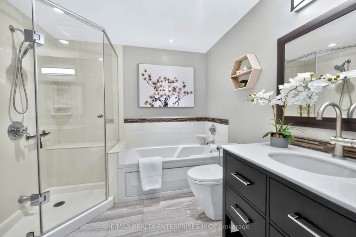 Welcome Home to Mississauga’s orginal iconic Community – The Barringtons. Impecable Location – Walk to trails, parks, community centre, shopping, and commuter routes. This Extensively upgraded home offers a rare blend of design, comfort, and practical improvements. The standout Designer Kitchen was created by Ramsin Khachi, known for his work featured on Cityline and The Marilyn Denis Show, and features Cambria quartz countertops, custom cabinets with under-cabinet lighting, heated flooring, pot lights, and luxe stainless steel appliances. Open-concept design flows through the dining room featuring backyard views throuh the living room with sliding glass door walk-out to the backyard. The primay bedroom boasts hardwood floors, built-in cabinetry with overhead pot lights, and two closets. The main bathroom has been fully renovated and expanded to include both a separate shower and soaking tub, complete with heated floors for added comfort. Fully insulated garage with an epoxy floor and Gladiator storage system for easy maintenance and organization. Direct access from the garage adds extra convenience. Throughout the home you will find hardwood flooring and stairs, complemented by durable iron railings that require no painting and are easy to maintain with a carpeted runner that adds warmth and comfort. The laundry room is designed for function, featuring folding counters, ample hanging space, storage cabinetry, and laundry sink. Outside, the garden has been professionally landscaped, creating an inviting outdoor space. Smart home features including a motorized blind in the living room, front door camera and customizable Rubbermaid closet systems throughout. This home has been impeccably maintained and upgraded – just move in and enjoy!