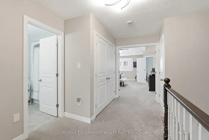 Located in the highly desirable Orchard community of Burlington, this immaculately maintained freehold town home offers approximately 1,800 square feet of above grade living space plus a partially finished lower level. The home offers an excellent open-concept layout with generously sized principal rooms. The large eat-in kitchen features abundant cabinetry and walkout to the maintenance free private yard which includes a patio and astroturf – perfect for summer entertaining. The bright living/dining area is spacious and flooded with natural light, offering ample room to host gatherings, or simply enjoy your meals at the breakfast bar. The cherry on top – the main floor is entirely carpet free! Upstairs, the generous primary retreat has his and hers walk-in closets and an ensuite bathroom – offering a luxurious soaker tub and walk in shower. Two additional well-sized bedrooms and a second full bathroom complete the upper level. California shutters are all around on the upper level. The basement adds more valuable living space with over 200 square feet finished, acting as a rec room but can easily be used as a teen retreat, home office or flex space. Completing the basement area is a very large (approx. 11x 29) storage room with running water that can be converted to more finished living space. Situated in a prime location close to top-rated Orchard schools, parks, trails, shopping and commuter routes including Appleby GO and QEW/407. This is a strong family neighbourhood with excellent long-term value retention. RSA.