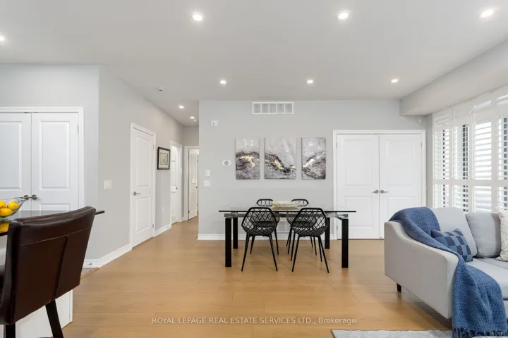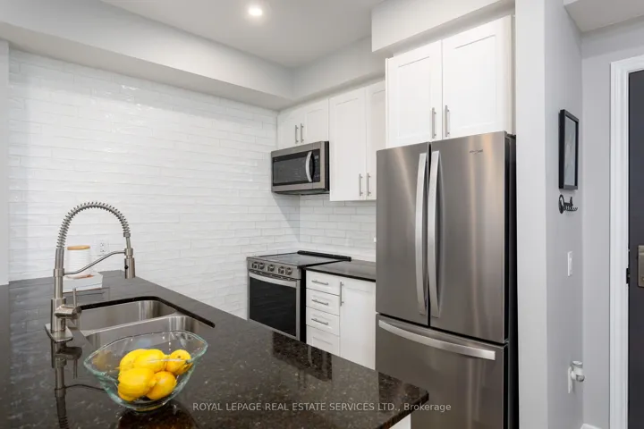 Welcome to Westmount, one of Oakville’s most sought-after communities, prized for its expansive parks, scenic trails, and placement within the highly desirable Garth Webb Secondary School catchment. This family-friendly neighbourhood offers exceptional convenience with the hospital just three minutes away, everyday shopping, restaurants, and services nearby, and outstanding commuter access-only four minutes to the 407ETR, six minutes to the QEW/403, and nine minutes to the Bronte GO Station, ensuring effortless travel throughout the GTA. This bright and stylish corner-unit stacked townhome features 2 bedrooms, 2 bathrooms, and approximately 993 sq. ft. of modern living space, plus an impressive 213 sq. ft. (approx.) covered balcony ideal for outdoor dining and relaxation. Thoughtful upgrades include deluxe kitchen cabinetry with upgraded hardware and backsplash, 9-foot smooth ceilings, oversized windows with California shutters, and upgraded LED pot lighting w/dimmers. Recent improvements add peace of mind,including a new dryer and dishwasher (2025), new laminate flooring (2024), and a full professional repaint (2022). The open-concept layout is filled with natural light and offers a well-appointed kitchen with granite countertops, peninsula/island with breakfast bar, and stainless steel appliances, seamlessly connecting to the living and dining areas with a walkout to the covered terrace. The spacious primary suite features a tray ceiling, a walk-in closet, and a 3-piece ensuite, while the second bedroom enjoys easy access to a 4-piece main bathroom with a tub/shower combination. In-suite laundry, two parking spaces, and an oversized storage locker complete this exceptional opportunity in a prime Oakville location.