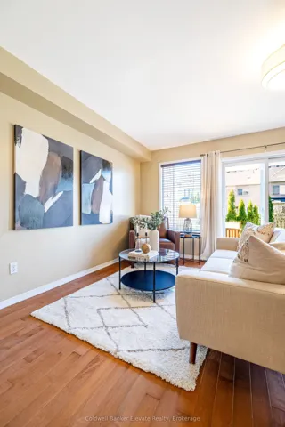 Welcome to this beautifully maintained freehold townhouse offering comfort, functionality, and thoughtful updates throughout. The landscaped front yard, stone walkway, and covered front porch create a warm and inviting first impression, complete with a private driveway with parking for two and an attached garage with overhead and hanging storage. Step inside to a bright and welcoming main level featuring solid 3/4 inch hardwood flooring through the hallway, living room, and breakfast area. The open concept layout is ideal for both everyday living and entertaining, with large windows and a double sliding glass door walkout that fills the space with natural light and provides seamless access to the backyard. The kitchen is both functional and inviting, offering warm brown cabinetry with curved panel detailing, a tile backsplash with multiple outlets, stainless steel appliances, and a breakfast bar with comfortable seating. Upstairs, the spacious primary bedroom offers a peaceful retreat with two windows overlooking the backyard, a chandelier, and two double closets for ample storage. The semi-ensuite 3 piece bathroom features a tub and shower combination, built-in vanity, and convenient access from both the bedroom and hallway. A second bedroom with front yard views, broadloom flooring, and a double closet completes this level. The unfinished basement presents excellent potential, with framing and electrical already completed, offering a great opportunity to create additional living space, a recreation area, or a home office. The private backyard is a true highlight, featuring a brand new spruce deck (2025), new fencing (2025), and beautifully landscaped gardens filled with mature perennials including hydrangeas, lilies, and magnolias, creating a peaceful outdoor setting to enjoy. A wonderful opportunity to own a move-in ready home in a family friendly neighbourhood with space to grow and make it your own.