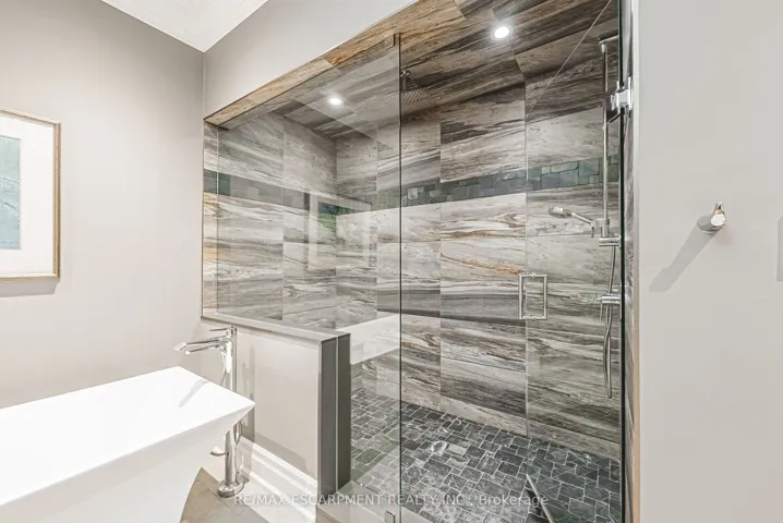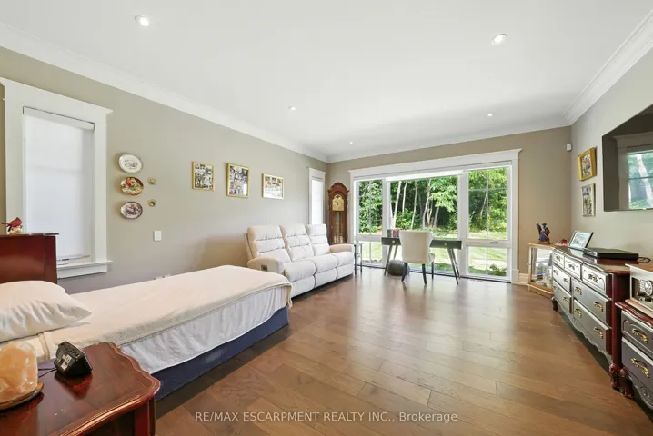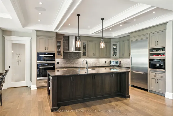 AMAZING! Custom Bungaloft nestled on a spectacular 12-acre property in Burlington. Featuring 5+1 bedrooms, 6 full bathrooms and 2 half baths with an attached triple car garage AND detached double car garage with storage loft! Boasting over 5,400 square feet PLUS an additional 4,300 square feet in the finished lower level. Resort-style exterior with a pool, hot tub, pond, cabana, outdoor kitchen, full bar, built in BBQ area, golf green, two firepits, a fireplace and 5+ forested acres! The main floor offers DUAL primary bedrooms- each with ensuite baths and large walk-in closets. There is also a main floor office and oversized dining room. The kitchen features a large island, stainless steel appliances and a walk-in pantry. The kitchen is open to the living room- which features 12′ ceilings and a stunning wood burning fireplace. There is also an oversized mudroom / laundry room with garage access and two powder rooms. The 2nd level of the home includes 3 large bedrooms and a 5-piece bathroom. The lower level (accessible by stairs OR elevator) features an amazing rec/family room, 6th bedroom, second kitchen, 2 full bathrooms, a wine cellar, gym, sauna, wet bar and plenty of storage! This home was custom built by Glen Oak Homes in 2016 and a main floor addition with full basement was added in 2024. The entire property was fully landscaped in 2023/2024. Interior and exterior ‘smart’ features throughout, highly efficient and fully private- a true paradise. Luxury Certified