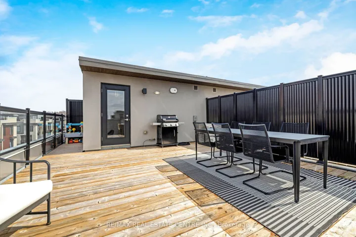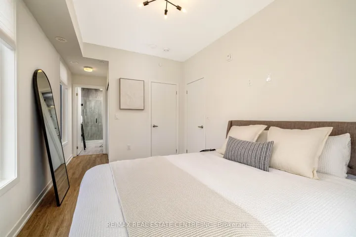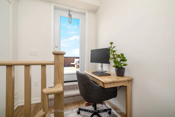 Step into style, comfort & effortless living in this beautifully upgraded, impeccable end-unit townhome, newly built in 2023. With 1,349 sq. ft. of thoughtfully designed space + a fabulous 400 sq. ft. private rooftop terrace, this home is set in a sought-after, family-friendly complex. Filled w/ natural light from additional end-unit windows, it showcases true pride of ownership w/ carefully curated finishes creating a warm, inviting feel throughout. It’s also tucked within the complex away from busy streets, for added privacy. The open-concept main level features 9 ft ceilings, premium waterproof vinyl plank flooring w/ cork underlay, & 6 dimmable pot lights in the living/dining area. The bright, modern kitchen is thoughtfully designed w/ quartz countertops, subway tile backsplash, matte black faucet, 4 additional pot lights, & a spacious walk-in pantry w/ custom shelving. Upgraded light fixtures throughout add a sleek, contemporary touch. Upstairs, enjoy 9 ft ceilings, cont’d premium flooring & durable high-end carpet w/ upgraded under padding on the stairs. Both bedrooms include custom closet organizers, there is also a dedicated office nook, perfect for working from home/study. The primary suite is a true retreat, featuring a frameless glass shower, matte black hardware, quartz counters & an elegant arched mirror. Additional features include TV wall conduits w/ recessed outlets, cordless cellular shades & a functional foyer w/ upgraded tile & a shoe cabinet. Step outside to the private rooftop terrace w/ gas line, an awesome extension of your living space in warmer months. Residents enjoy a private playground, outdoor workout area & a welcoming community atmosphere. Includes 1 underground parking spot w/ security cameras in underground parking. Incredible location, mins to Hwy 403, Costco (4 min), Erin Mills Town Centre (6 min), Credit Valley Hospital (7 min) & T&T Supermarket (5 min). Steps to The Way Plaza & top-rated schools. Move-in ready, don’t miss out!