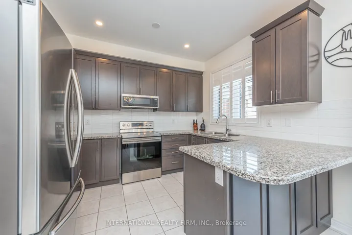 This charming two-story townhouse is in one of North Oakville’s most sought-after neighborhoods. It offers three generously sized bedrooms, three full bathrooms, and one half-bath. The main floor showcases beautiful hardwood flooring and 9-foot ceilings. The upgraded kitchen has granite countertops, stainless steel appliances, and high-end cabinetry. Wood stairs lead to the upper level, where the primary bedroom features a walk-in closet and an en-suite bathroom with a separate shower and soaking tub. Two additional spacious bedrooms share a well-appointed 4-piece bathroom, offering plenty of living space. Further highlights include an interlocking patio, a builder-finished basement, pot lights, and California shutters. The townhouse is conveniently situated near highways, restaurants, shopping centers, schools, parks/trails, and the GO Train station.