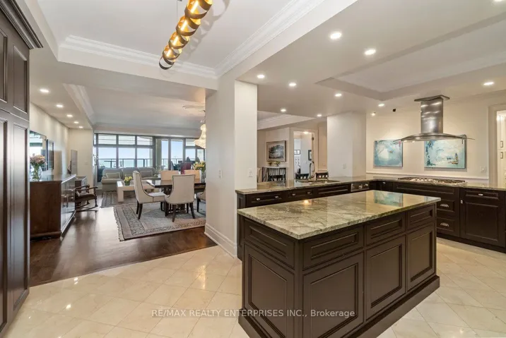 Rarely Offered Waterfront Legacy Property at The Waterford. Spanning a massive 2,672 sqft of interior luxury plus a 240 sq. ft. private terrace, this 3-bedroom, 3-bathroom masterpiece is the epitome of “Bungalow in the Sky” living. Situated in a prestigious boutique building at 2095 Lakeshore Blvd W, this residence offers an elite level of privacy with direct-to-unit elevator access opening into a grand foyer with elegant wainscotting. A true showstopper featuring a Private Wine Room, two natural gas fireplaces, and rich hardwood floors throughout. The Chef’s Kitchen is a culinary dream with a Sub-Zero fridge/freezer, gas cooktop, double ovens, granite counters, and a large pantry. The dining room’s open-concept design, accented by crown moulding, pot lights, and rich hardwood floors, easily accommodates large family gatherings or elegant dinner parties. The Primary Retreat is a sanctuary featuring a private gas fireplace, dual closets – including a large walk-in and a renovated 5-pc spa ensuite with double vanities, a glass shower, and a jacuzzi tub. The Second Bedroom functions as a private guest wing with its own 4-pc ensuite and walk-out to a 2nd private balcony. The Third Bedroom is a versatile executive space with custom-built-ins and large windows, perfect for a high-end home office. The sun-drenched family room leads to an expansive private terrace with a gas BBQ hookup, offering breathtaking, unobstructed views of Lake Ontario and the Toronto Skyline/CN Tower. Includes 2 owned side-by-side parking spaces and 2 full lockers. Experience 5-star boutique living with 24-hr concierge, valet parking, a counter-current lap pool, sauna, fitness centre, and a panoramic rooftop BBQ terrace. Nestled in the heart of Humber Bay Shores, you are steps from the Martin Goodman Trail, Humber Bay Park, and the city’s finest lakeside dining. A 15-minute commute to downtown Toronto and easy access to the Gardiner/QEW and local transit.