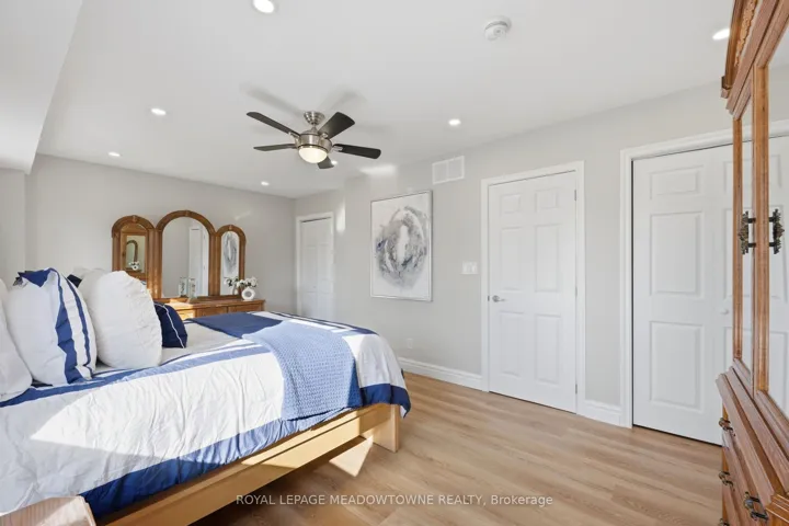 Welcome to 73 Elizabeth Dr., 1 of only 5 homes with an unobstructed view of Fairy Lake! The quaint front porch is the perfect spot to enjoy views of parkland, walking trails & Fairy Lake-there isn’t a better view of the famous Canada Day fireworks at Prospect Park! This beautiful 4-level sidesplit has been extensively renovated & modernized within the last few years and is truly move-in ready. The welcoming open concept main floor has new luxury vinyl flooring throughout, smooth ceilings w/ pot lights, oversized windows showcasing natural light & those incredible lake views! The renovated kitchen features quartz countertops, new s/s appliances, oversized b/i pantry & easy access to the large backyard. Upstairs the primary suite offers stunning lake views, pot lights, luxury vinyl flooring & his/her closets. This level is completed by a 3-piece bathroom w/ new oversized vanity & large glass shower. The lower level, which is still above-grade offers 2 great size bedrooms, both large enough for Queen sized beds and lake views. This level also has luxury vinyl flooring and holds a 4-piece bathroom with huge soaker tub & oversized vanity. This home is completed by a finished basement. The rec room is cozy w/ beamed ceilings & a wetbar. Storage isn’t an issue w/ a large crawl space & the unfinished utility room offers a great laundry rm set-up w/ new laundry sink. Additional features to highlight are a new central vac rough-in, new entry doors from the front & rear of the home, all new windows are thermal with low-e panes, newly refinished stairs with oak handrails & pickets, newer roof, new humidifier, newer furnace & new sump pump. Steps from Acton “Boathouse” for fishing, kayaking and canoeing; Prospect Park w/ huge park, splash pad, baseball diamonds, indoor & outdoor soccer field, tennis & pickle ball courts, this family orientated subdivision offers quick access to tons of extra-curricular activities for the whole family.