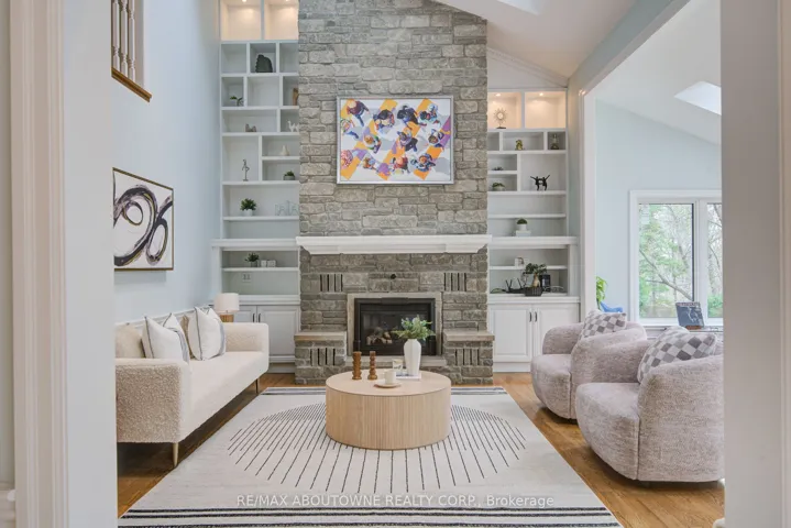Enclaved in the woods, nestled on a premium ravine lot in an exclusive four-home cul-de-sac, this custom Dalzotto-built estate offers approximately 4,000 sf above-grade living space, highlighted by a full-stone exterior, professionally interlocked driveway, landscaped backyard, all within walking distance to top-rated schools such as Pilgrim Wood PS &Abbey Park HS. Designed for both entertaining and everyday living, the main floor features a bright foyer leading to formal living and dining rooms, while the impressive family room showcases 17-foot sloped ceilings, five skylights, a dramatic floor-to-ceiling gas fireplace that flows into a sun-filled solarium. The chef’s kitchen, renovated in 2016, with custom cabinetry, large center island, premium appliances, including Sub-Zero 36″ freezer ,36″fridge set, a Wolf 36″ hood w/wall mount blower ,W gas cooktop, a double oven, an Asko dishwasher, and a Sharp under-counter microwave. The upper level offers four spacious bedrooms with floor-to-ceiling windows, including a primary suite with a walk-in closet w/ luxurious 5-piece ensuite, two bedrooms connected by a Jack&Jill 5-piece bathroom, a fourth bedroom with its own private 4-piece ensuite. The expansive lower level, with a separate entrance, adds exceptional versatility with a large recreation room, a games room, a fifth bedroom or den with a 4-piece bath, a cold room, ample storage. The private backyard retreat features over 135 feet of ravine frontage a saltwater heated pool with a new liner (21), a 1.5 HP pump (23), an updated sand filter (23), along with additional upgrades such as a new deck ,BBQ (16), backyard fencing and two wood sheds (2019), back & side triple-pane window replacements (21), owned hot water tank (25). Attic Insulation upgrade (21). An upgraded gas meter supports multiple features simultaneously, including two gas fireplaces, a gas stove, fire pit, BBQ, two furnaces, ensuring this exceptional home delivers luxury , outstanding performance.