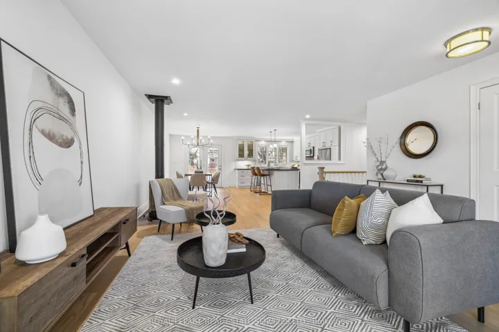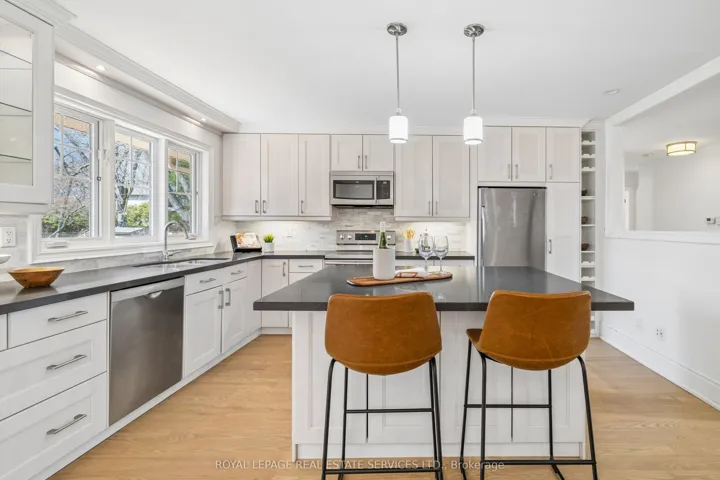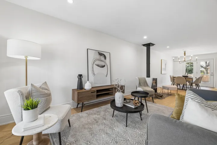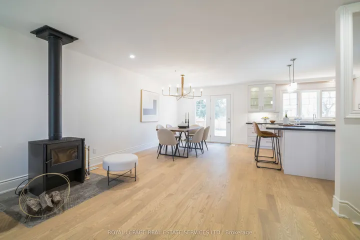 Nestled on a quiet street among multi-million dollar homes in a mature West Oakville neighborhood, this beautifully updated raised bungalow is an exceptional find for downsizers and families alike. Offering over 2,200 square feet of freshly painted living space, the home features a highly functional 2+2 bedroom, 2-bathroom layout. Newly redone hardwood floors flow effortlessly throughout the bright, open-concept main level, where a cozy living room anchored by a charming wood-burning stove seamlessly connects to a stunning modern kitchen. This culinary space is perfectly appointed with stainless steel appliances, crisp white shaker cabinetry, and a large quartz center island. Downstairs, the finished lower level significantly expands your living space, boasting a spacious recreation room, a versatile den, a convenient three-piece bathroom, and two additional bedrooms accented by French doors. Step outside to discover your own private, fully-fenced backyard oasis shaded by mature trees. An elevated wooden deck and green lawn lead down to an expansive Banas stone patio that beautifully frames a premium, three-year-old saltwater pool. Designed for ultimate outdoor entertaining, this resort-style retreat is complete with tranquil water feature, an automatic cover, and a brand-new privacy fence. Perfectly situated just minutes from the boutique shops and fine dining of downtown Oakville, this home offers an unparalleled lifestyle near top-rated schools, including Pinegrove Public School, St. Thomas Aquinas, and Appleby College. Some photos have been virtually staged.