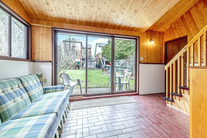 Welcome to this charming and well cared for bungalow offering a functional layout, warm finishes, and a beautifully landscaped backyard retreat. The main level features hardwood flooring throughout the living, dining, and all three bedrooms, creating a seamless and inviting flow that feels both comfortable and cohesive. A bright living room with a large picture window overlooks the front yard, filling the space with natural light, while the dining area offers a peaceful view of the backyard, making it ideal for both everyday meals and hosting family and friends. The eat in kitchen provides great functionality with ample cabinetry, laminate counters, and a convenient side door walk out to the yard for easy access. All three bedrooms are well sized and include closets and hardwood flooring, offering flexibility for families, guests, or a home office setup, with a full 3 piece family bathroom nearby. The lower level offers a mix of finished and unfinished space, adding flexibility to suit a variety of needs. Enjoy a finished rec room with exposed wood beams, a gas fireplace with brick surround, and above grade windows that bring in natural light. A finished 3 piece bathroom and laundry area add everyday convenience, while the unfinished workshop and additional storage space provide room for hobbies or future customization. Step into the bright 3 season sunroom with cedar wood ceilings and large windows, offering a beautiful transition to the outdoors and a space to enjoy year round in every season. The backyard is a true highlight, featuring a wood deck, interlock patio, greenhouse, mature trees, and established gardens, all within a fully fenced setting, ideal for relaxing, gardening, or entertaining. A double wide driveway with parking for four, plus a carport with tandem parking, provides ample space for vehicles and added everyday convenience. A wonderful opportunity to enjoy comfortable living both inside and out in a peaceful setting.