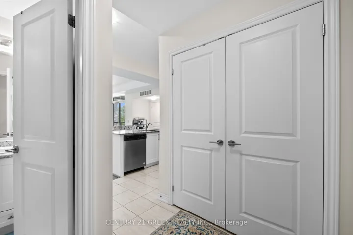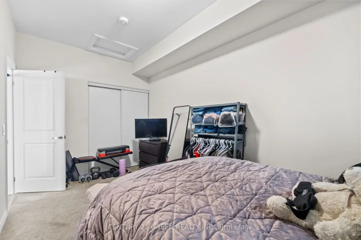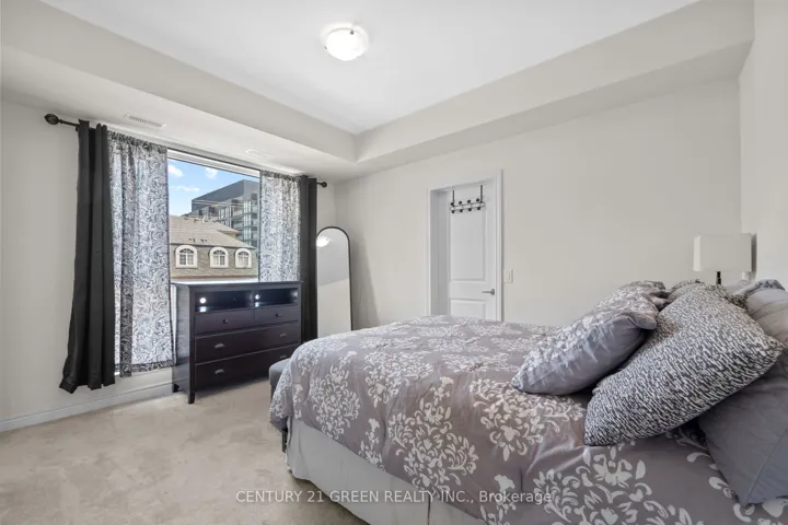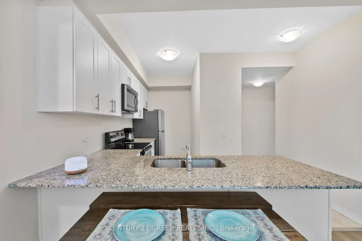 Welcome to this spacious and well-designed 2-bedroom, 2-bathroom corner condo offering 1,005sq. ft. of comfortable urban living. The open-concept layout features laminate flooring in the main living areas and cozy carpeting in the bedrooms. The modern kitchen includes granite countertops and stainless steel appliances, combining style and function. The bright living and dining areas flow seamlessly and open onto a large, private balcony-perfect for relaxing or entertaining. The primary bedroom features a 3-piece ensuite and a walk-in closet with custom organizers, while the second bedroom offers generous space and natural light. This unit includes two parking spots-one in a private garage and one on the driveway-as well as a huge locker providing exceptional storage. Ideally located near major highways (403, 407, QEW),shopping, schools, hospitals, and places of worship, this condo delivers the perfect blend of space, convenience, and contemporary living.