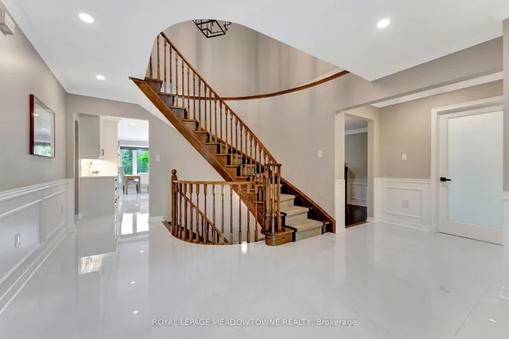 Welcome to 2008 Peak Place, where timeless design and modern comfort come together in one of Oakville’s most sought-after neighbourhoods. Tucked away on a quiet, tree-lined street and backing onto a serene ravine, this 4+1 bedroom, 4.5-bathroom home offers over 4,000 square feet of thoughtfully designed living space where every detail feels intentional. The grand foyer sets the tone, reimagined with custom millwork and large format tile, creating a refined first impression. At the heart of the home, the chef’s kitchen-fully renovated in 2022-features bespoke cabinetry, stone countertops, and premium stainless steel appliances, seamlessly connecting to the family room with hardwood floors and a modern fireplace. It’s a space equally suited for quiet evenings and entertaining. Formal living and dining rooms offer flexibility for hosting, while the main-floor laundry & powder room add everyday convenience. Upstairs, the primary suite is a true retreat, complete with electric blinds, a custom walk-in closet, and a spa-inspired ensuite. A second bedroom features its own renovated ensuite, while two additional bedrooms share an updated bathroom.The finished lower level extends the living space with a generous rec room, gas fireplace, wet bar, & a fifth bedroom that easily functions as a home office or gym. A full 3-piece bathroom completes the level. Notably, the basement flooring was replaced at the end of 2025, along with new stair runners, adding a fresh, cohesive feel throughout. This home has been meticulously maintained with thoughtful upgrades, including a fully renovated garage (2022) with epoxy floors, built-in cabinetry, and wall treatments, along with updated mechanicals and key components throughout. With direct access to nature and just minutes to top-rated schools, shopping, major highways, and the lake, this home offers a rare balance of lifestyle, location, & long-term value. 2008 Peak Place, quietly impressive, and exactly what you’ve been waiting for.