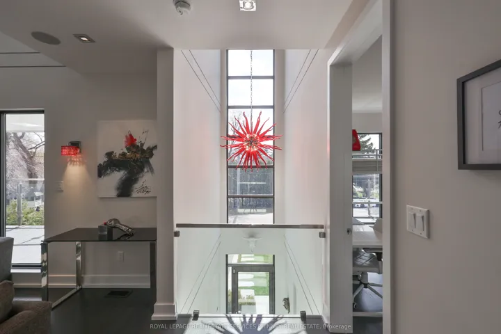 Sun-drenched and architecturally striking, this rare 3-storey contemporary home offers over6,100 sq ft of refined living space, blending modern elegance with exceptional functionality. Featuring 4+2 bedrooms and 6 bathrooms, the residence includes multiple outdoor retreats with 3walkouts to private decks and 2 to expansive rooftop terraces. The main level showcases a sophisticated layout with a private office, sunken living and dining rooms, and a stunning great room with a two-sided gas fireplace. The space flows into a high-end Scavolini kitchen with Miele integrated appliances, custom cabinetry, and a waterfall quartz island. A walkout leads to a resort-style backyard with a saltwater pool and waterfall. A custom mudroom with Scavolini cabinetry provides garage access. The upper levels are finished with wide plank flooring and oversized stone tiles, adding a cohesive and upscale design element throughout. Upstairs, four spacious bedrooms include a luxurious primary suite with a walk-in closet, private balcony, and spa-inspired 5-piece ensuite. The second bedroom has its own ensuite, while the third and fourth share a Jack & Jill bath, with the fourth offering a balcony walkout. A bright family room with a beverage centre and balcony adds flexible living space. A convenient laundry room with ample storage completes the 2 nd level. The bonus space on the third floor is ideal for entertaining, featuring a lounge, 2-piece bath, beverage centre, and access to two rooftop terraces. The finished basement offers a theatre room, gym, two additional bedrooms, and a 3-piece bath. The landscaped backyard is a private oasis with a saltwater pool, paver patio, and mature trees. Additional highlights include Control4 home automation. Located in sought-after Lakeview, close to waterfront trails, parks, schools, Port Credit, highways, and GO transit.