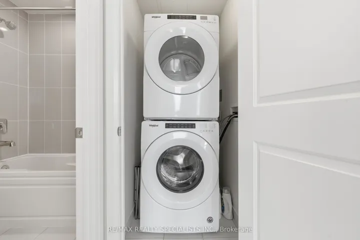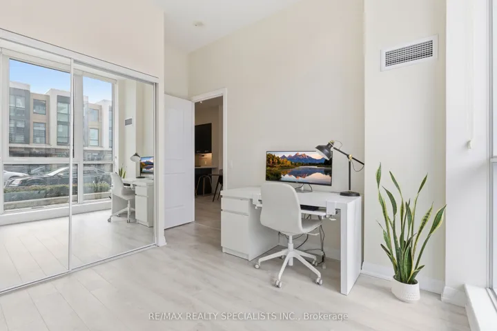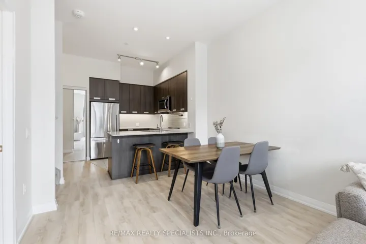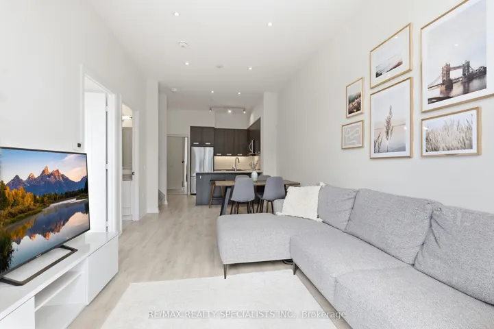 Stunning 2-storey condo townhouse in the prestigious Perla at Pinnacle in Mississauga’s sought-after Hurontario neighbourhood! This 3 bedroom, 3 bathroom townhouse offers 1,292 sq ft of living space with ground-level entry and an exceptional layout across two levels. With approximately 10 ft smooth ceilings on both floors and expansive floor-to-ceiling windows, the home is flooded with natural light, creating a warm and inviting atmosphere. The main level features an open-concept living and dining area with potlights, a modern kitchen with quartz countertops, stainless steel appliances, porcelain backsplash, and under-cabinet lighting, plus a 3rd bedroom and full 4-piece bathroom. Hardwood stairs lead to the upper level offering a spacious primary bedroom with a luxurious 5-piece ensuite featuring a soaker tub and separate stand-up shower, a generous 2nd bedroom, full 4-piece hallway bath, in-suite laundry, and a balcony. Laminate wood flooring throughout with porcelain tile in all bathrooms. Modern finishes including mirrored closet doors and glass doors to outdoor spaces. Enjoy seamless indoor-outdoor living with a 125 sq. ft. private patio on the main level, perfect for entertaining, plus an additional 145 sq. ft. private balcony upstairs. Residents enjoy resort-style amenities including an indoor pool, kids’ playroom, fitness centre, library, party room, and security concierge. One owned parking spot and locker included. Conveniently situated minutes from Square One Shopping Centre, restaurants, Sheridan College, Celebration Square, GO Transit, Hurontario LRT, and Highways 403/401/407.