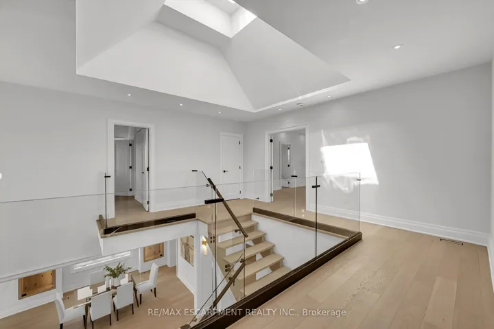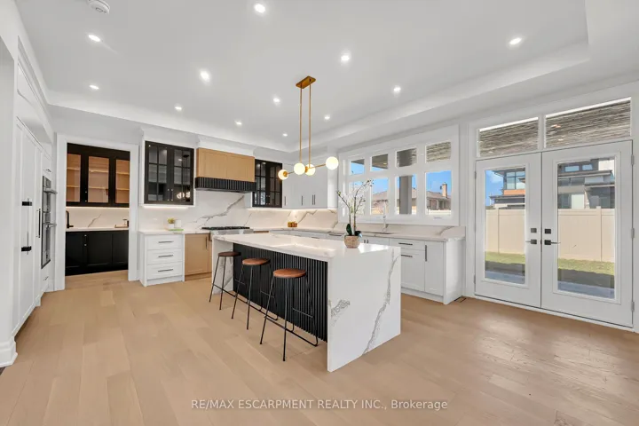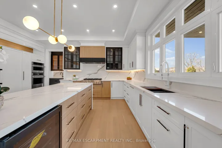 An architectural masterpiece of unrivaled quality, this custom-built residence commands a premium 65-foot frontage lot, offering a 4+3 bedroom layout across over 5,900 square feet of refined living space. No expense has been spared in this designer-chic home, where guests are greeted by an open-concept foyer with soaring 20-foot ceilings and a bright skylight. The main floor offers a formal living and office space that flows seamlessly into a grand dining room, complete with custom built-ins and cove waffle ceilings with integrated LED inlays. This space transitions through a butler’s pantry and servery into a custom chef’s kitchen, which boasts bespoke millwork, under-cabinet lighting, and a grand waterfall island tailored for entertaining beside oversized windows overlooking the yard. The kitchen opens into a great room featuring 16-foot ceilings, a custom feature wall, and a gas fireplace, all complemented by intricate ceiling work and built-in cabinetry with LED accents. The second floor hosts four large bedrooms, each offering a private ensuite with custom imported finishes and bespoke built-in closets, alongside a discreetly tucked-away laundry room. The master suite features heated floors, dual vanities, and an abundance of natural light. The spacious lower level includes a great room with a linear fireplace, a walk-up entrance, and a home theatre with custom cabinetry and lighting, plus three additional spacious bedrooms. Located minutes from the QEW, 407, Appleby College, and Downtown Oakville, this home is truly not to be missed. Luxury Certified.