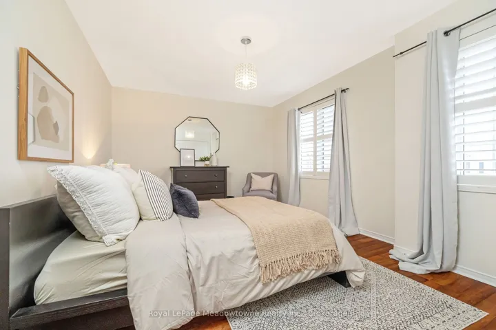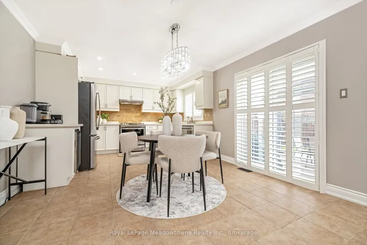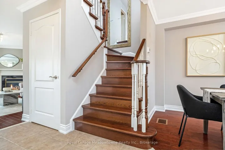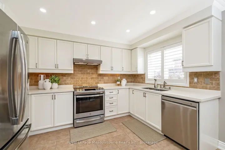 Beautifully maintained 4-bedroom (all freshly painted), 3-bath Great Gulf Egerton model on a rare 100 ft deep lot, offering 2,400 sq. ft. of bright, carpet-free living space filled with natural light. Features a spacious primary retreat with ensuite and two walk-in closets, main floor laundry, side door entry, and a versatile upper loft. Thoughtfully updated with furnace/humidifier & A/C (2021), roof (2018), garage door (2020), added attic insulation (2021), and newer appliances including fridge, stove (approx. 2021) and dishwasher (2025). Modern all white eat-in kitchen with quartz counters, overlooking the family room with a walk out to the back yard where you will find stunning perennials, and spacious patio. All bathrooms have been updated with quartz counters, and painted in warm neutral tones. Prime family-friendly location just steps to Bruce Trail Public School, St. Anthony of Padua Catholic School, parks, splash pad, and only a short drive to the 401 and Milton GO Station.