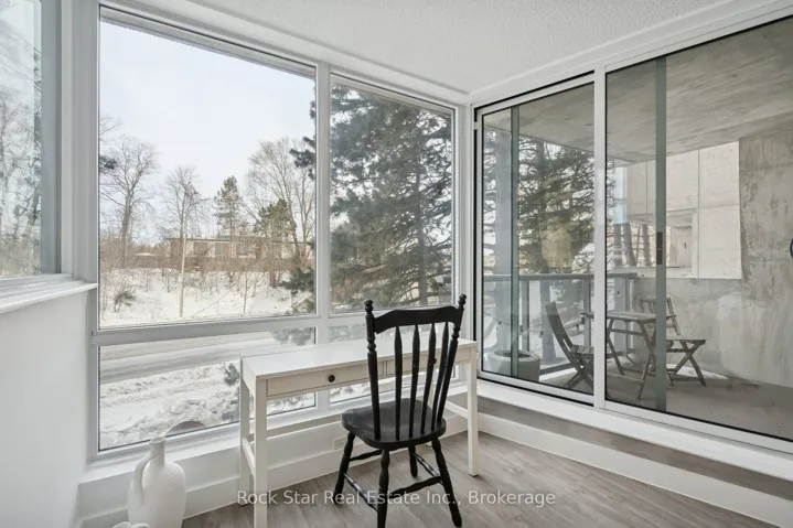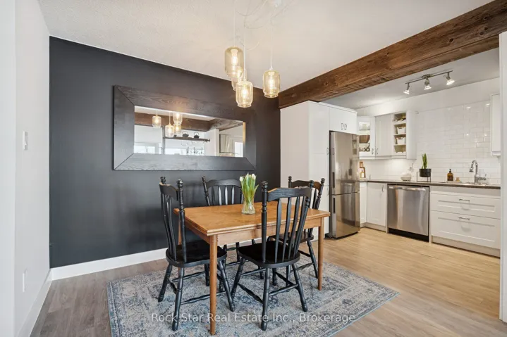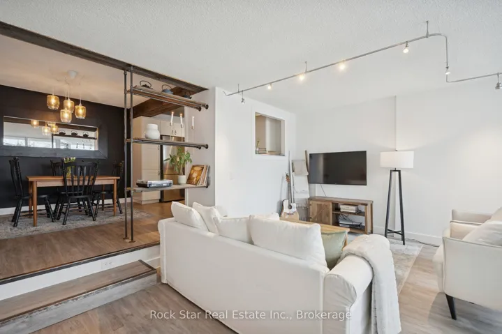 Spacious living in the heart of Kerr Village. Rarely offered and generously sized at over 730 sq. ft., this expansive one-bedroom suite delivers exceptional value in a market where many comparable units offer far less space. Enjoy a layout that comfortably accommodates full-sized furniture, distinct living and dining areas, and room to truly unwind. The spacious kitchen offers ample prep and storage space, perfect for cooking and entertaining, and flows seamlessly into the open-concept living area. Thoughtfully updated with modern, chic finishes, this ground-floor residence lives more like a bungalow than a condo. Floor-to-ceiling windows fill the home with natural light, while sleek laminate flooring, striking wood beam accents, and concrete-textured ceilings add warmth and character with a subtle industrial edge. Skip the elevator and step directly onto your private terrace, surrounded by mature trees for a peaceful, tucked-away retreat. Set just steps from the cafés, restaurants, and boutique shops of vibrant Kerr Village, and ideally positioned for commuters with easy access to the GO Station, QEW, and Oakville’s lakefront. If you’ve been searching for a one-bedroom that offers both lifestyle and meaningful square footage, this suite delivers outstanding space, style, and value in one of Oakville’s most walkable neighbourhoods.