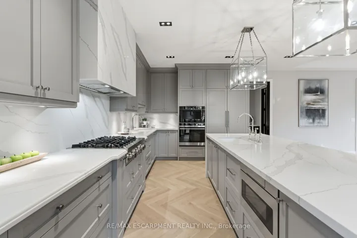 **THIS LISTING IS LOCATED IN THE AREA OF THE #1 ELEMENTARY SCHOOL IN ALL OF ONTARIO (as per the most recent Fraser Report)** An exceptional custom-built estate, this stunning Modern Georgian masterpiece offers over 7,500 sq. ft. of refined living in the heart of Mineola West, just 400 meters from Kenollie Public School. Set on a quiet, private lot, the home blends timeless elegance with cutting-edge design. The striking stone facade, black-framed windows, and metal roof with dormer accents exude curb appeal, while manicured gardens and an 8-car driveway complete the impressive exterior. Inside, a 26-ft grand foyer with a showstopping chandelier introduces soaring ceilings, herringbone white oak floors, and sleek Italian quartz tile throughout. The chef’s kitchen is a showpiece, with a waterfall island, premium appliances, and custom cabinetry, opening to a skylit covered porch with a gas fireplace and outdoor kitchen rough-in-perfect for year-round entertaining. The two-storey great room stuns with a 26-ft feature wall, modern fireplace, and 42-bulb chandelier. Upstairs, the primary suite offers a private terrace, a custom walk-in, and a spa-worthy ensuite with heated floors. Each additional bedroom features bespoke detailing and designer finishes. Every bathroom has heated floors. The lower level with heated floors, walkout, and bath/bar rough-ins offers endless possibilities – home theatre, gym, or in-law suite. With dual furnaces, EV charging, smart home readiness, and professional landscaping, this home defines luxury living just minutes from Port Credit Village, top schools, marinas, parks, and the QEW. Experience the art of living-refined, inspired, and absolutely unforgettable. Luxury Certified.